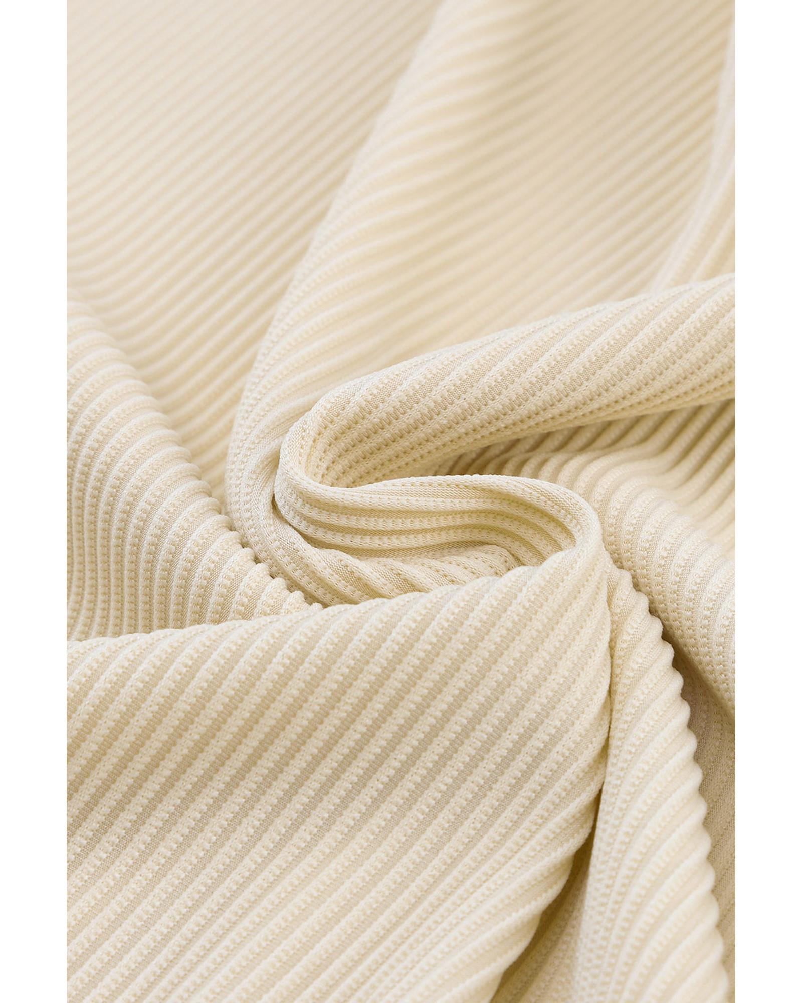 - Ribbed texture with lace trim detailing