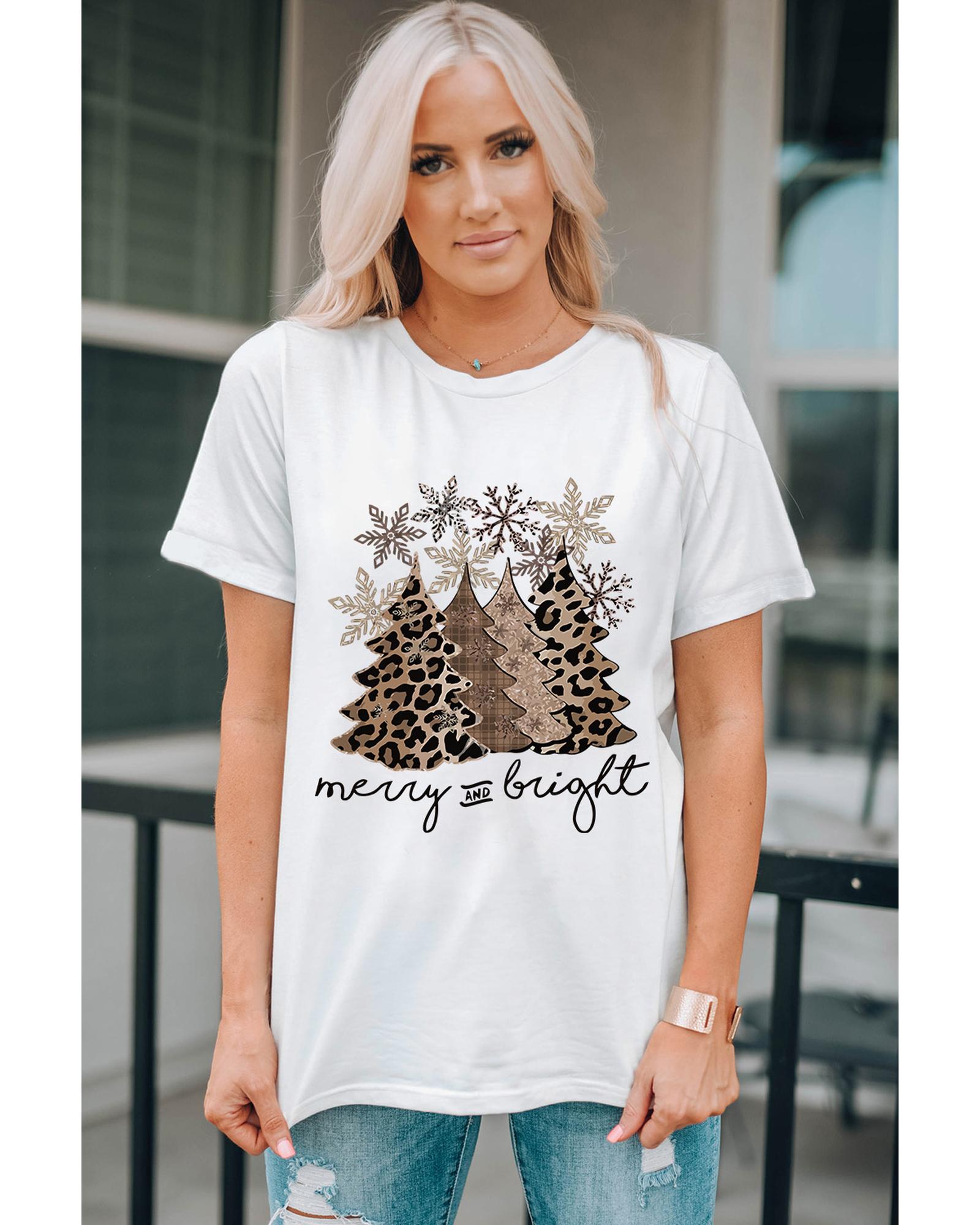 Azura Exchange Leopard Christmas Tree Graphic Print T-Shirt – M