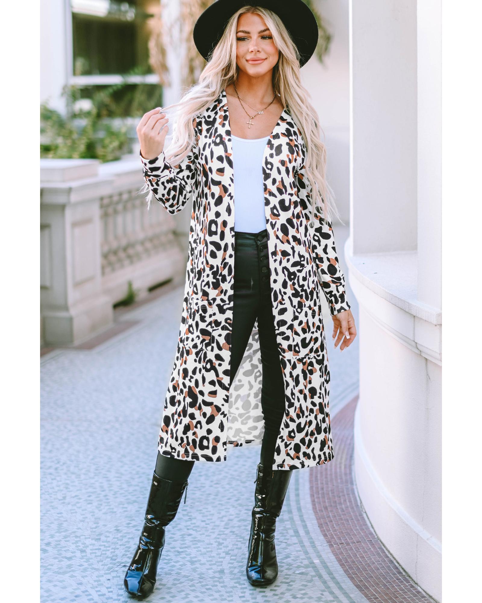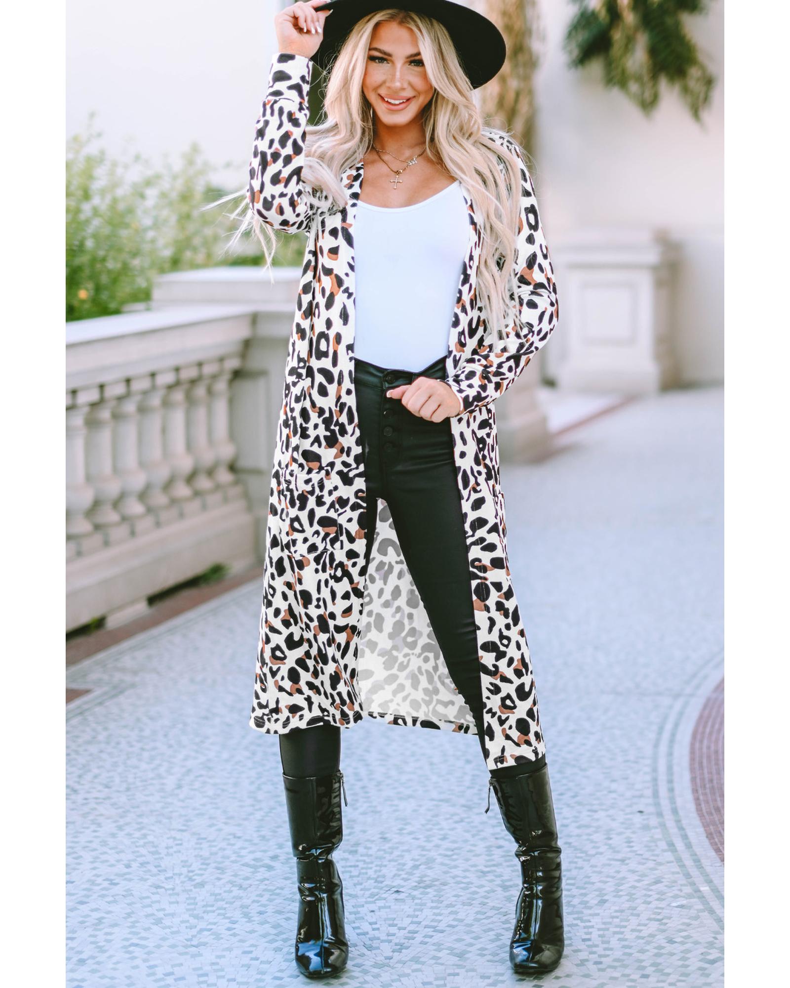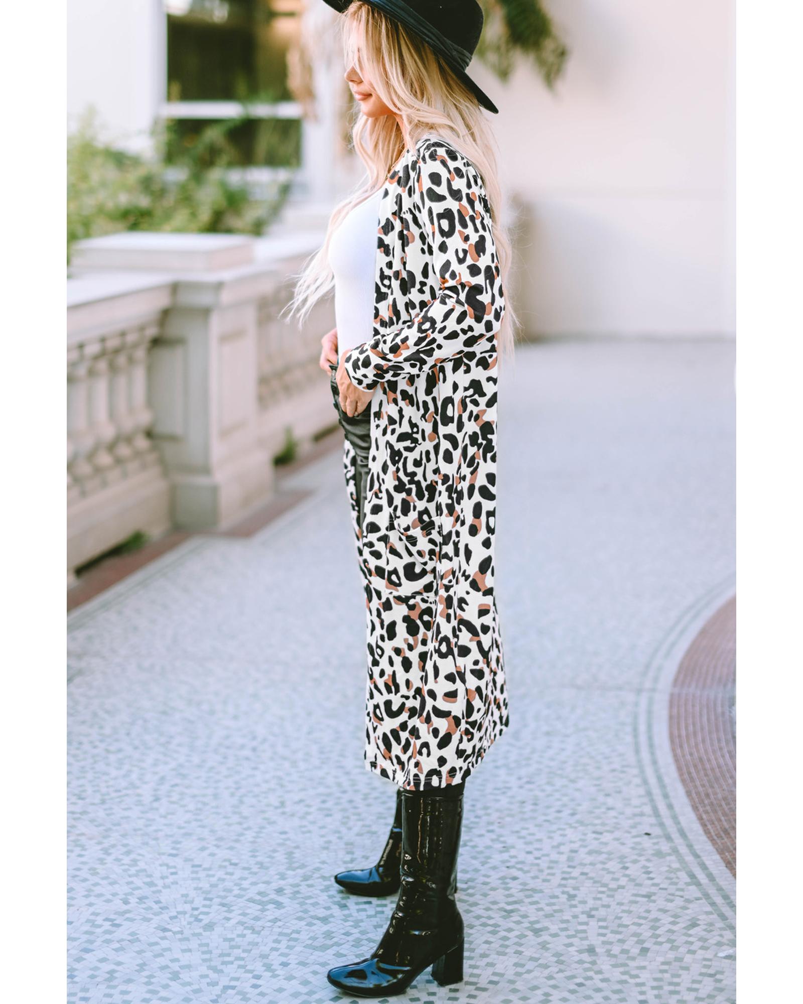 Azura Exchange Leopard Pocketed Open Front Duster Cardigan – S