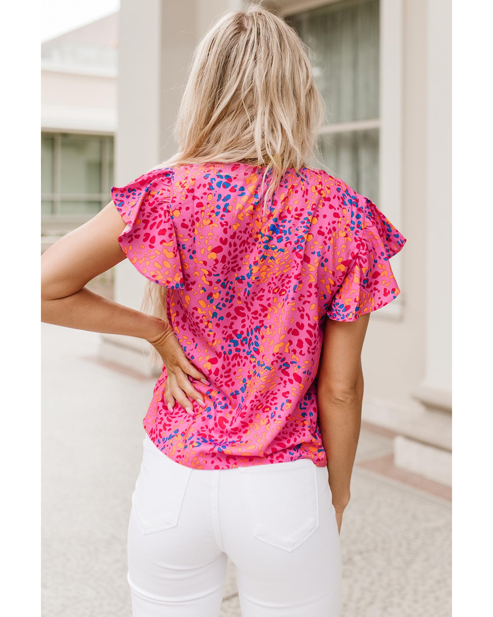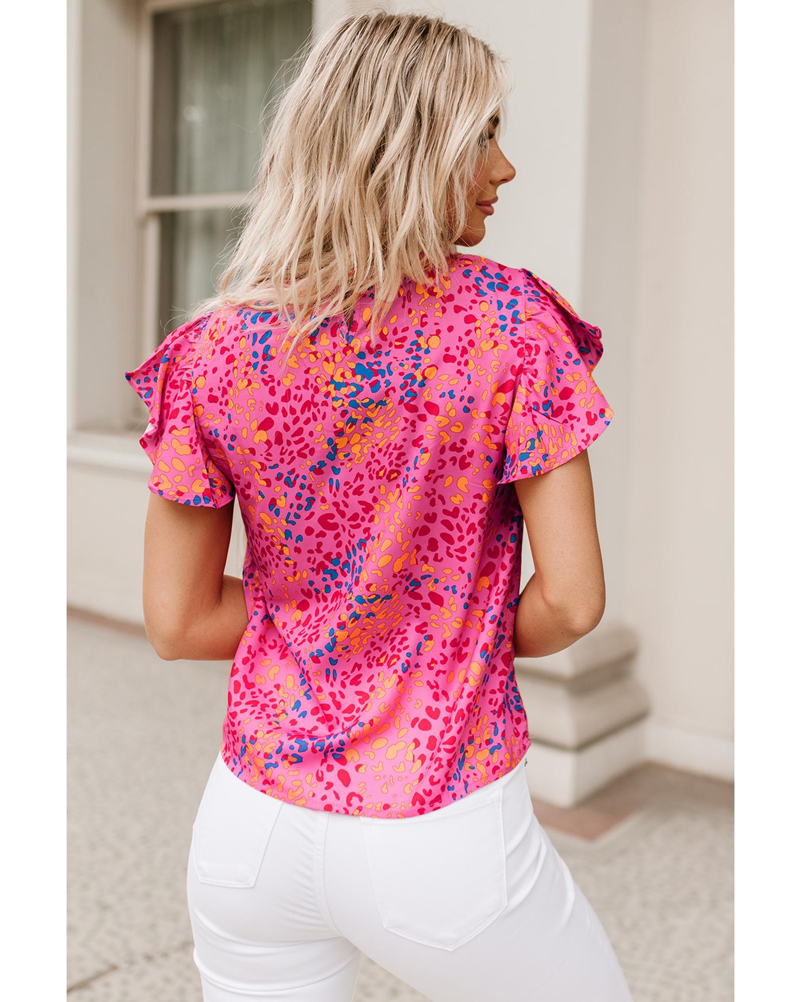 Azura Exchange Leopard Print Flutter Sleeve Blouse – M