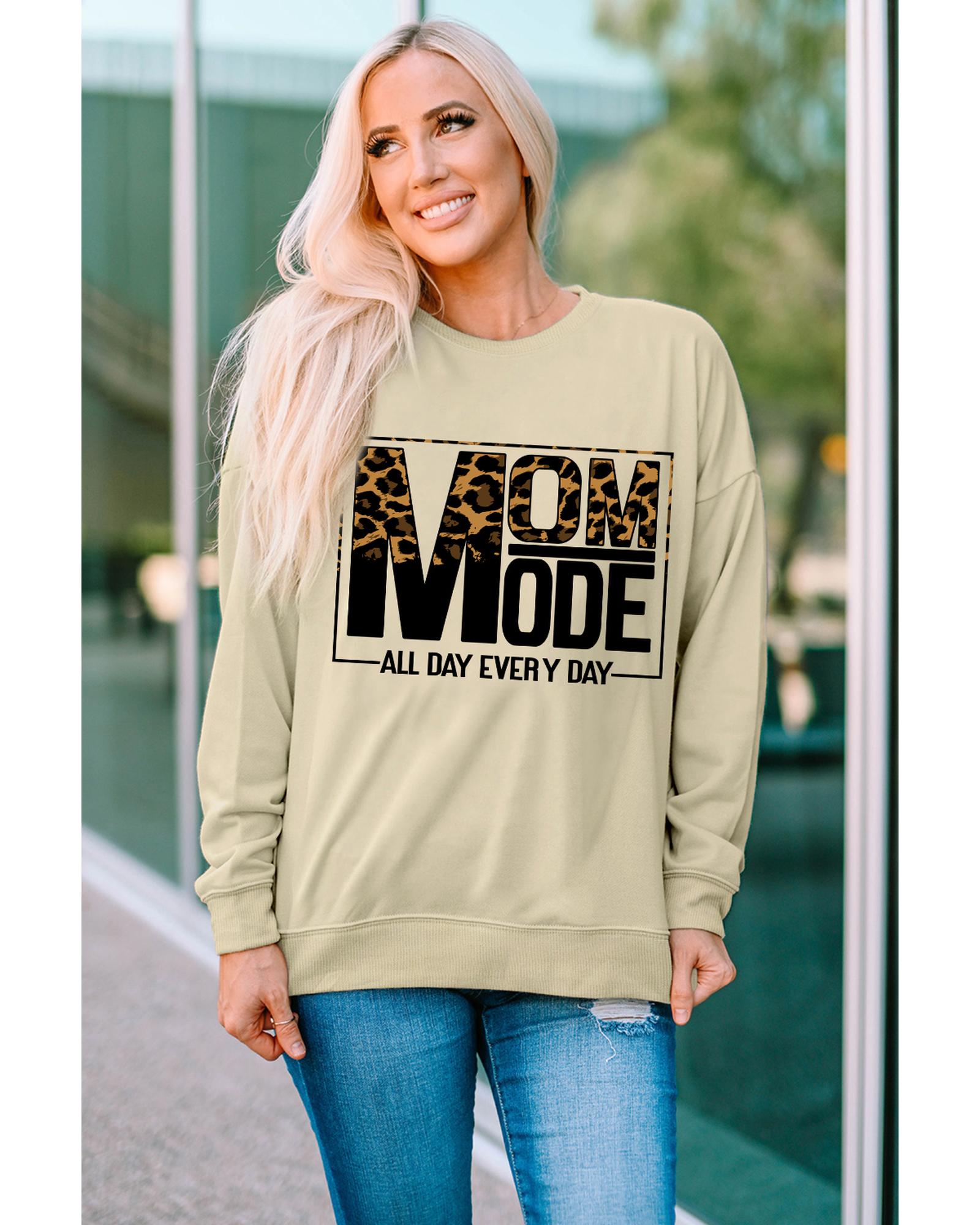 - Stylish and comfortable Khaki MOM MODE Leopard Print Long Sleeve Sweatshirt