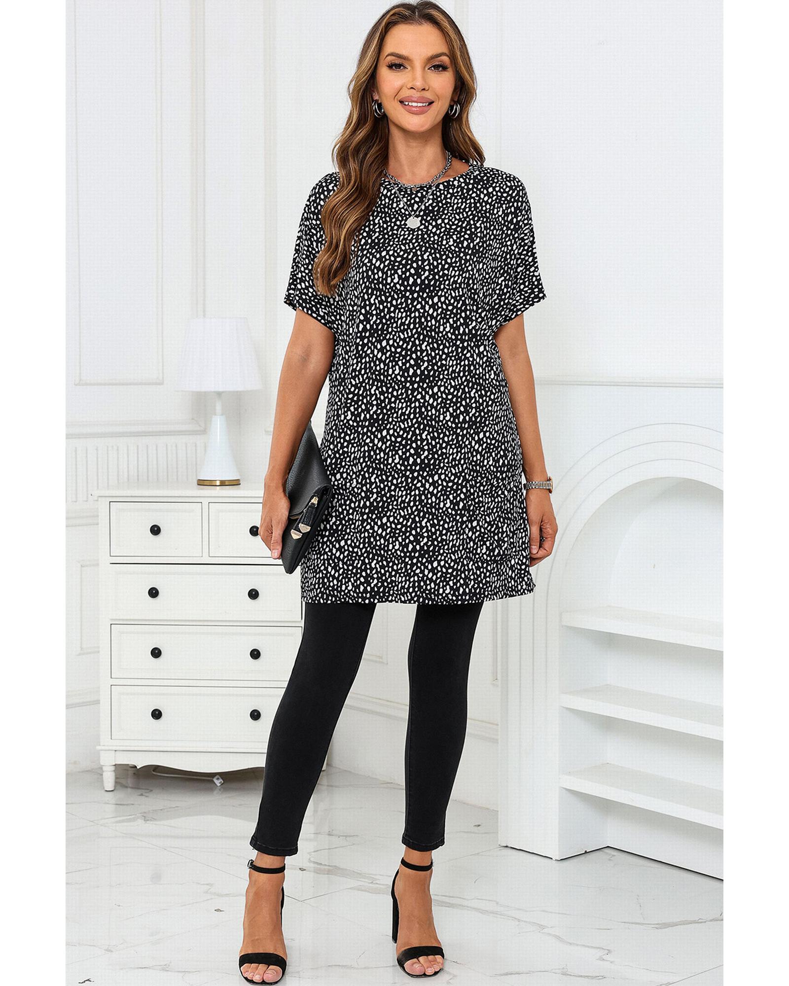 - Leopard Print Side Pockets Tunic Top