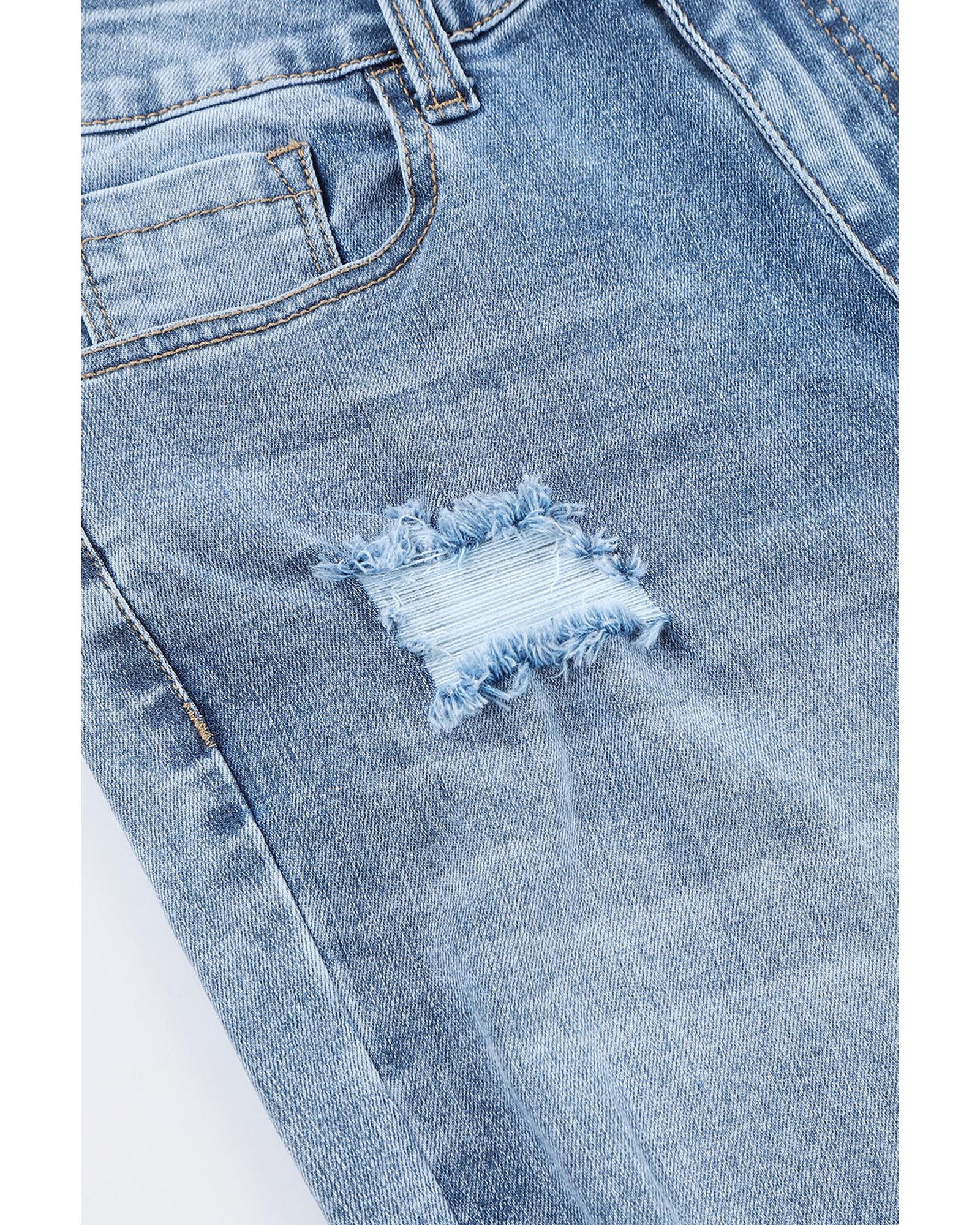• Light wash and distressed detailing for a trendy worn-in look