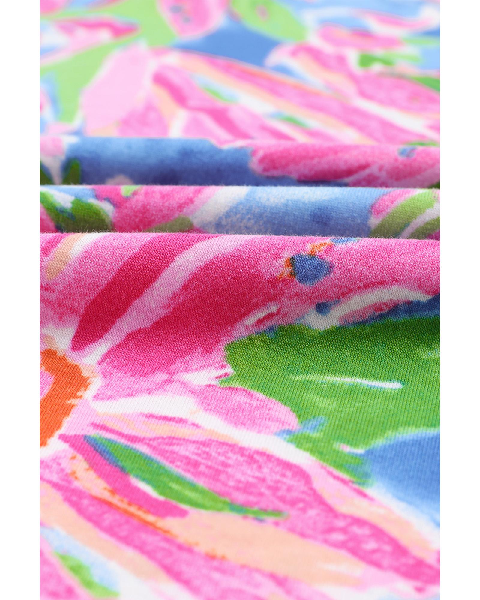 - Floral Print Loose Fit V Neck T-Shirt