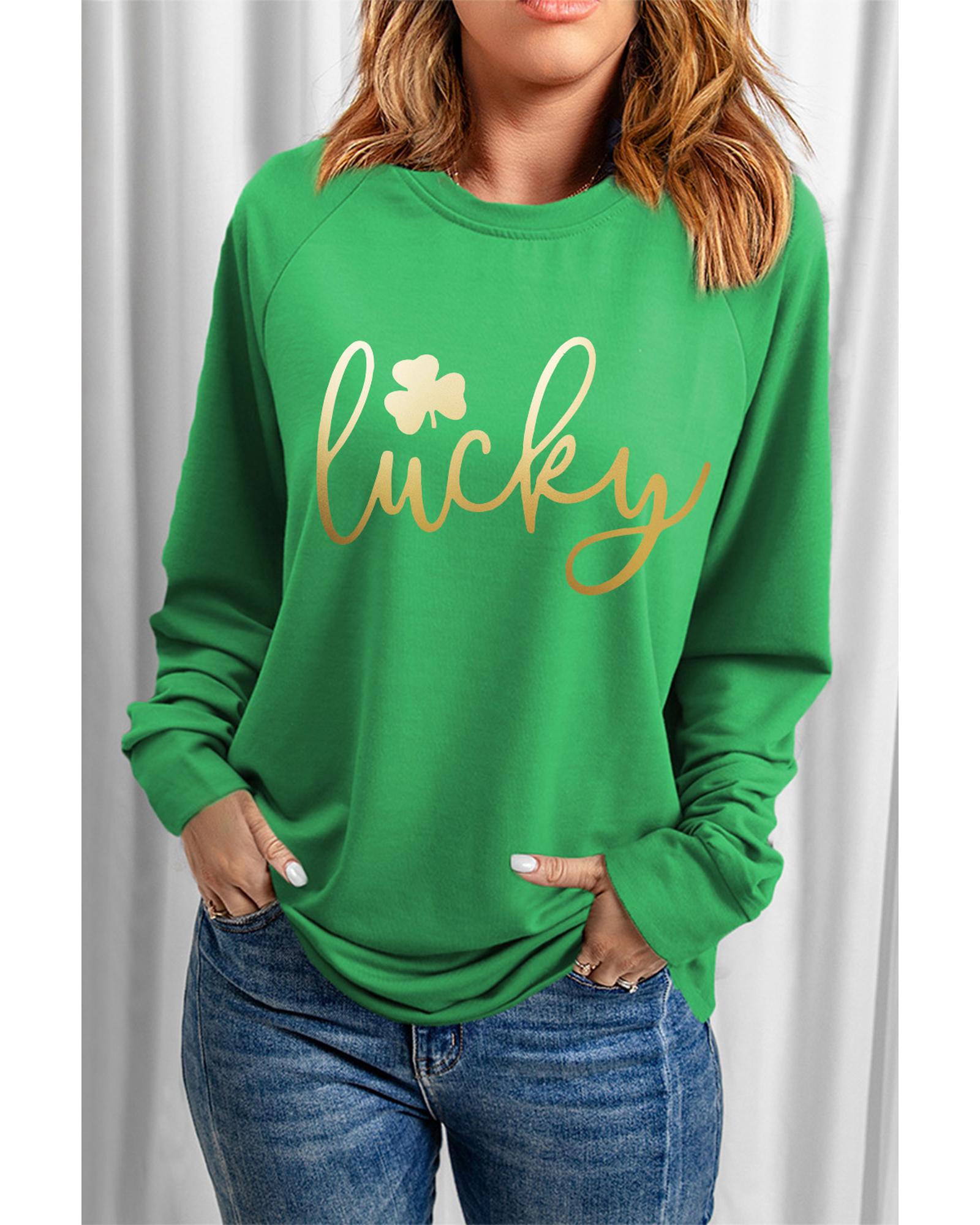 - Womens Lucky Glitter Graphic Raglan Sleeve Pullover Sweatshirt