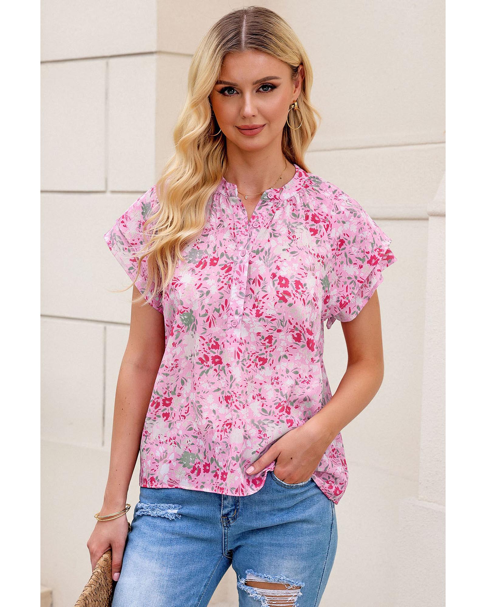 • Stylish and elegant Floral Mandarin Collar Top