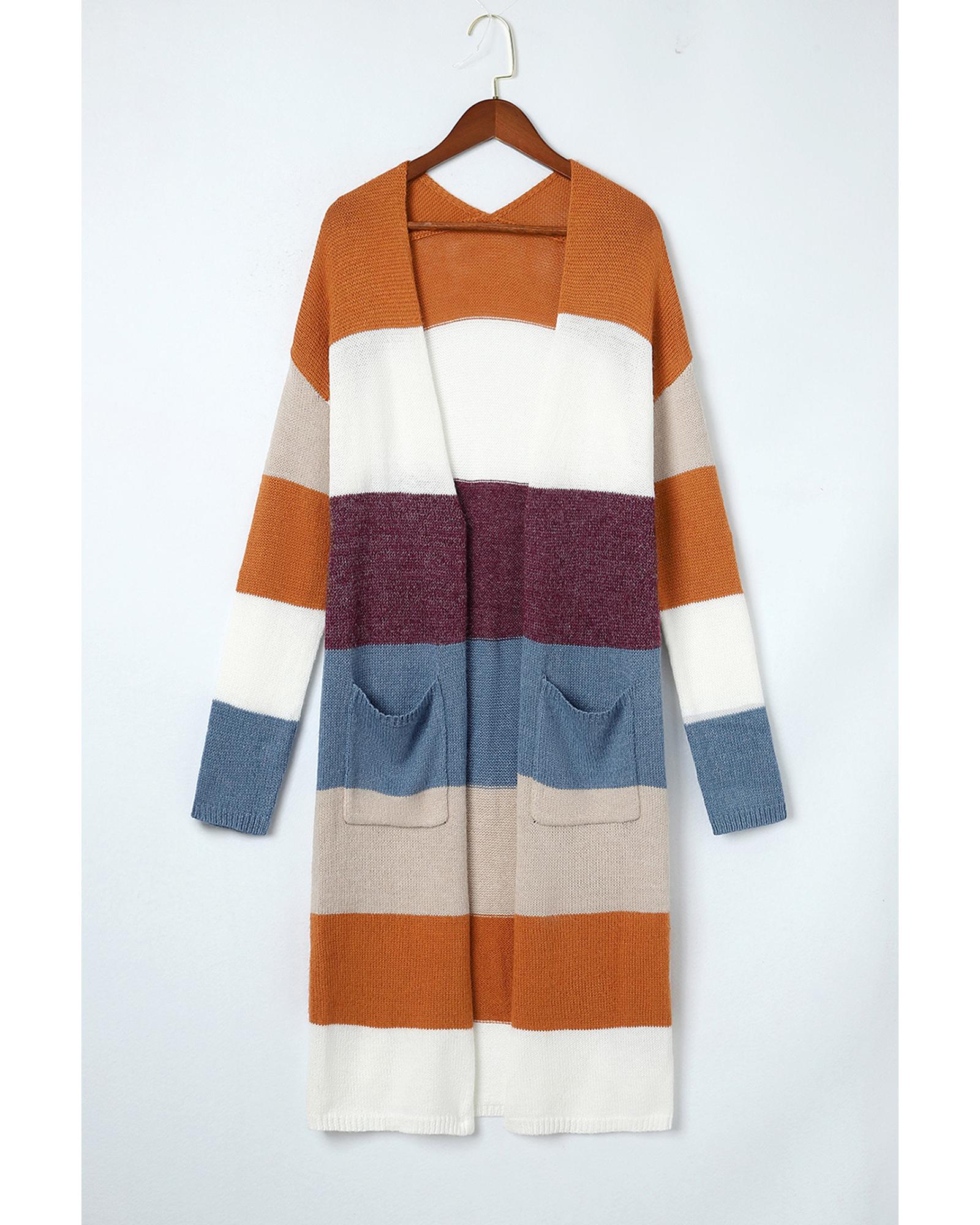 Azura Exchange Multicolor Colorblock Open Front Long Knit Cardigan – M
