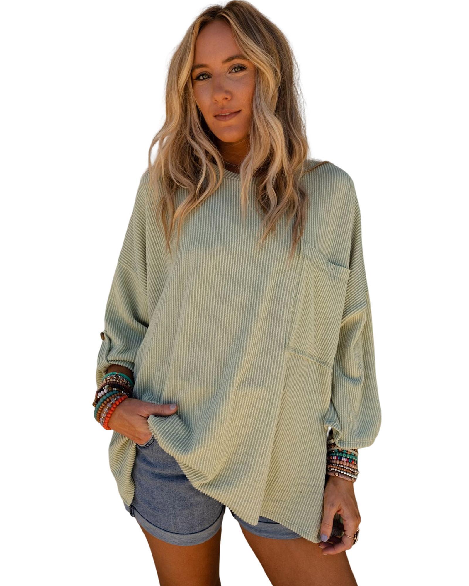 Azura Exchange Oversize Ribbed Roll-tab Sleeve Top – S