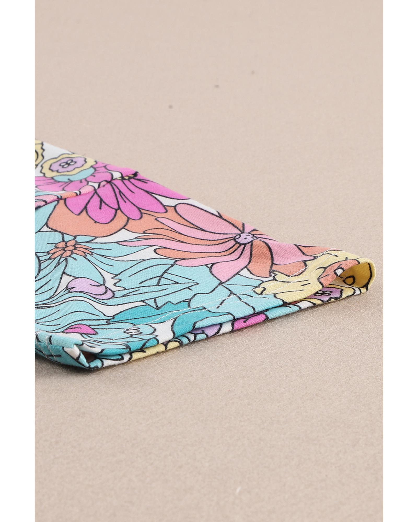 - Stylish and trendy Floral Print Patchwork Short Sleeve Top