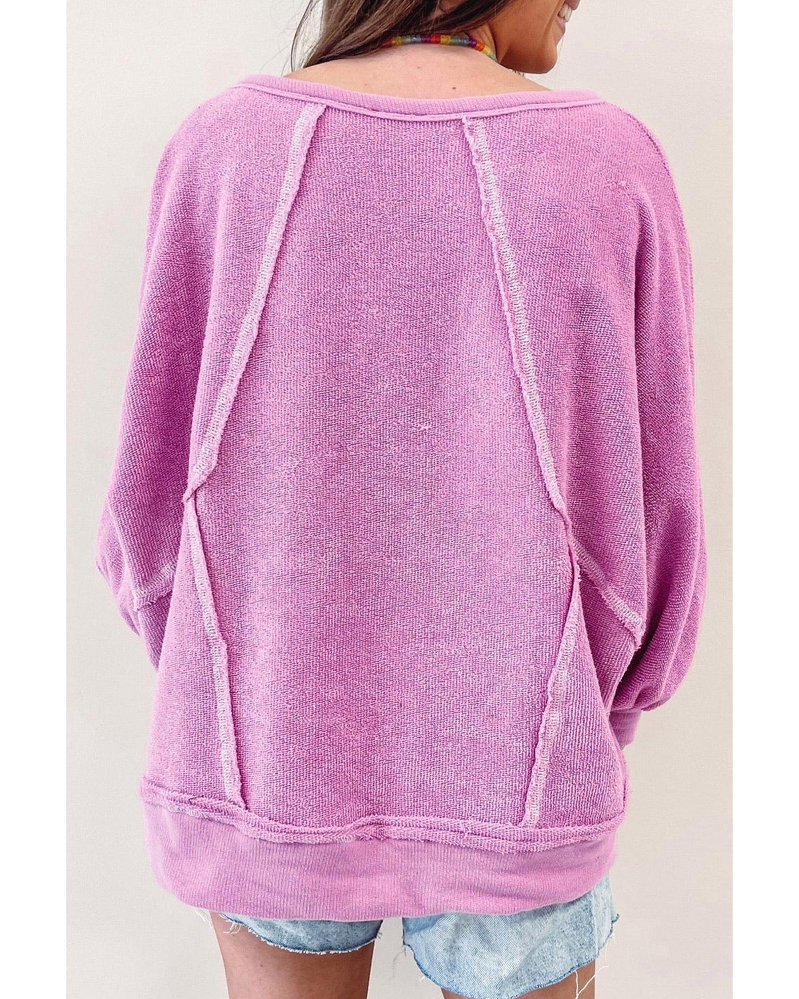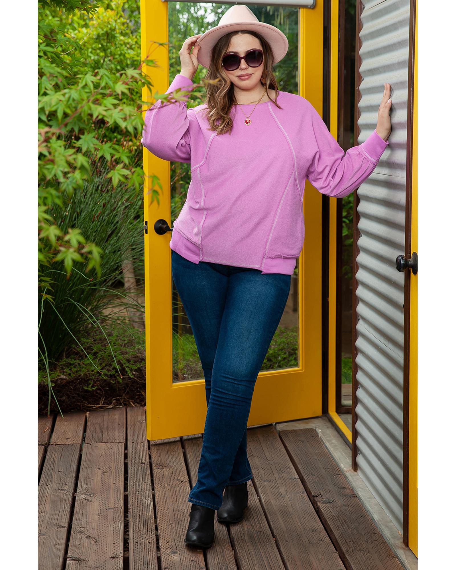 Azura Exchange Pink Plus Size Exposed Seam Terry Long Sleeve Top – 1X