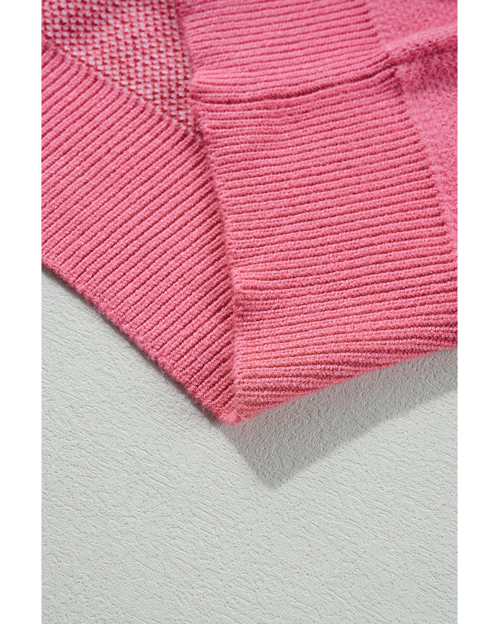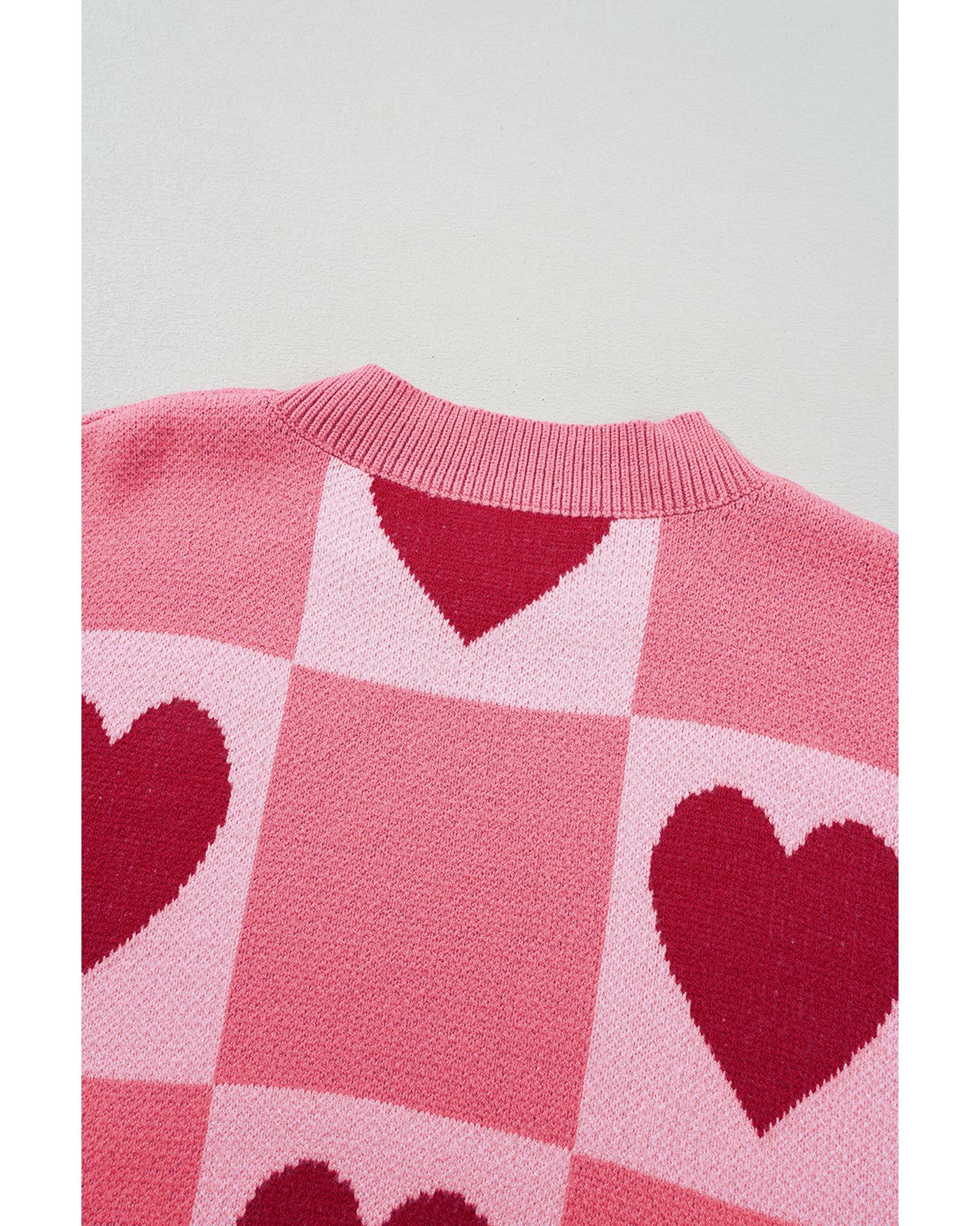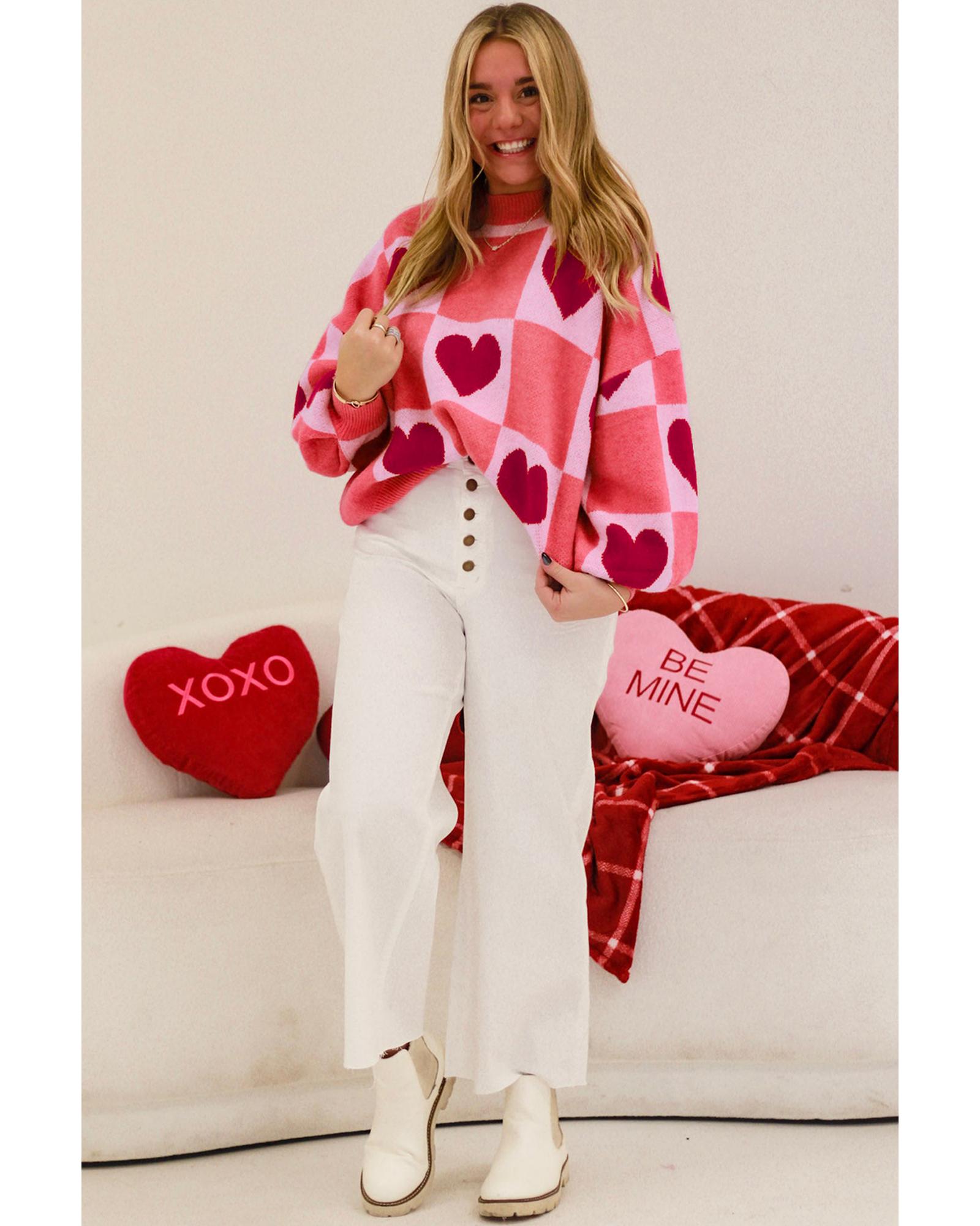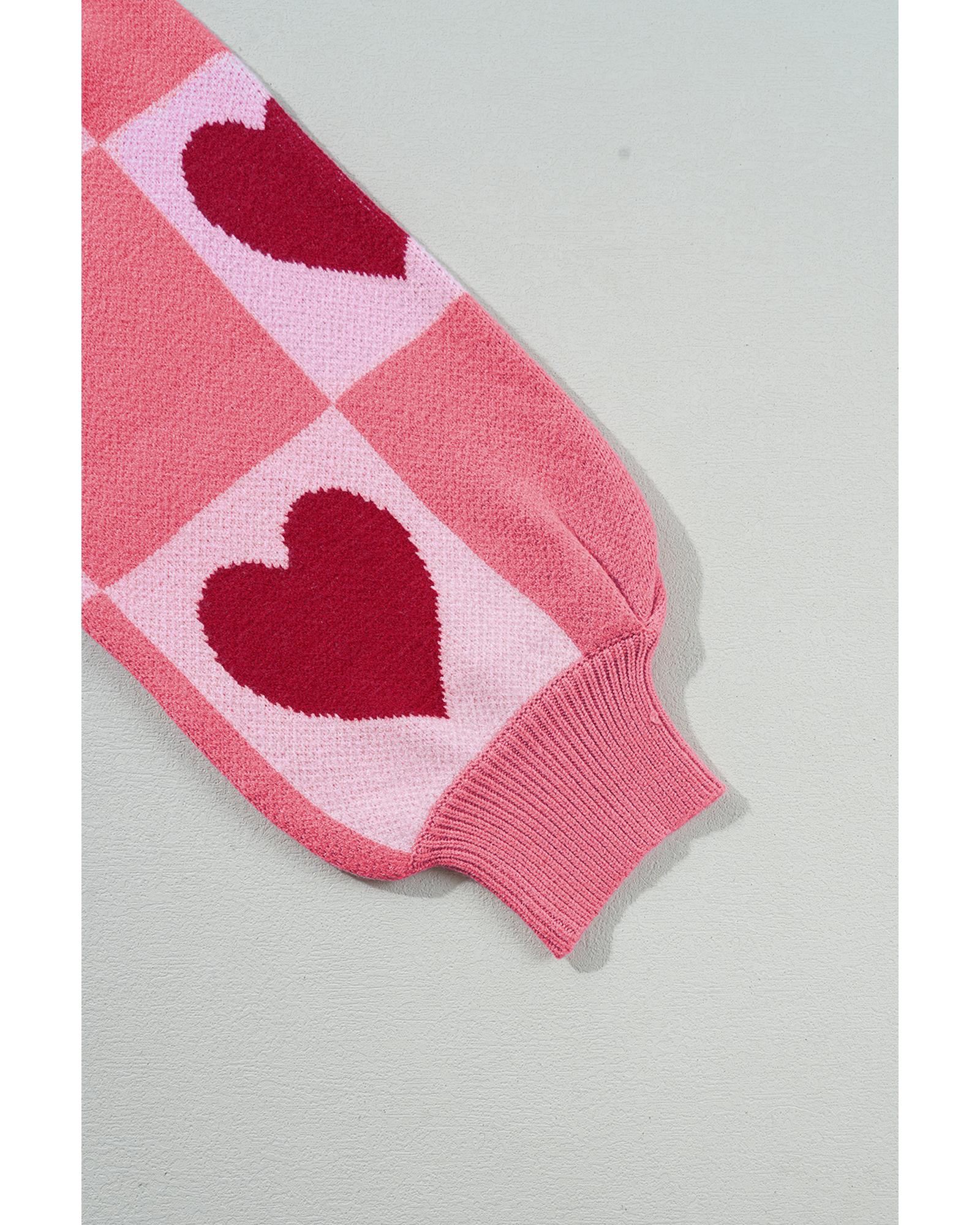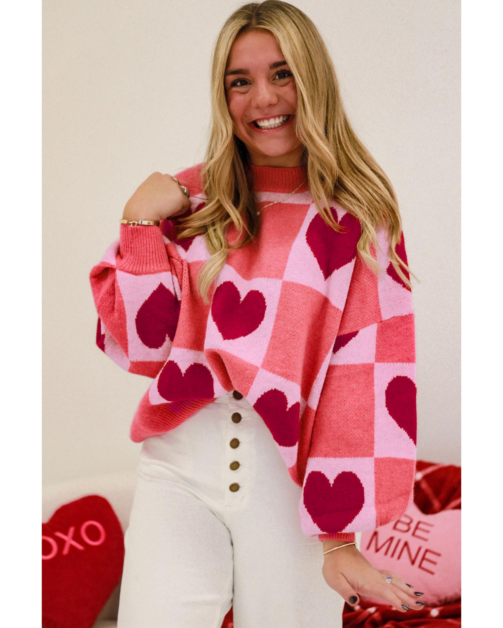 Azura Exchange Pink Plus Size Love Heart Block Mock Neck Lantern Sleeve Valentine Sweater – 1X