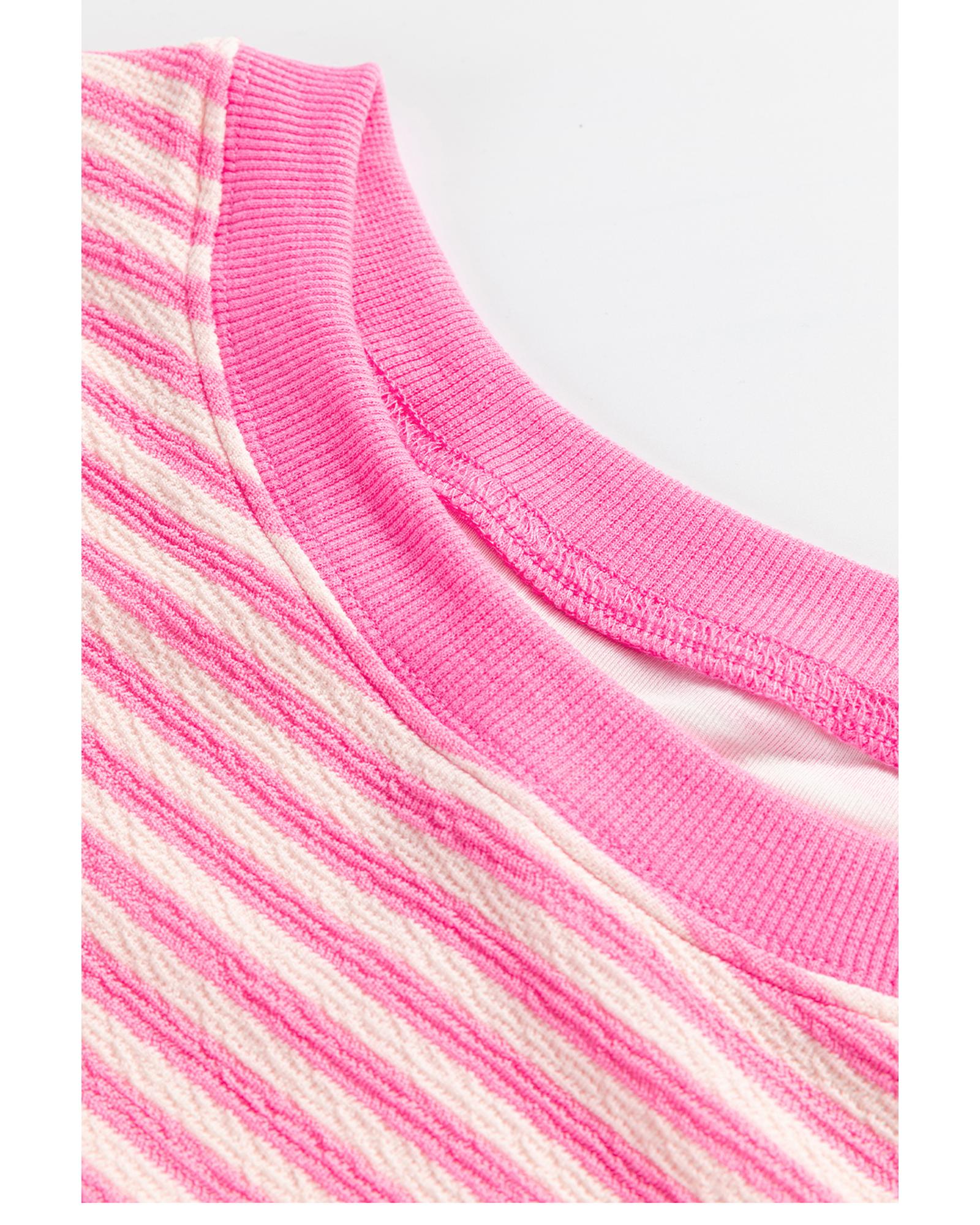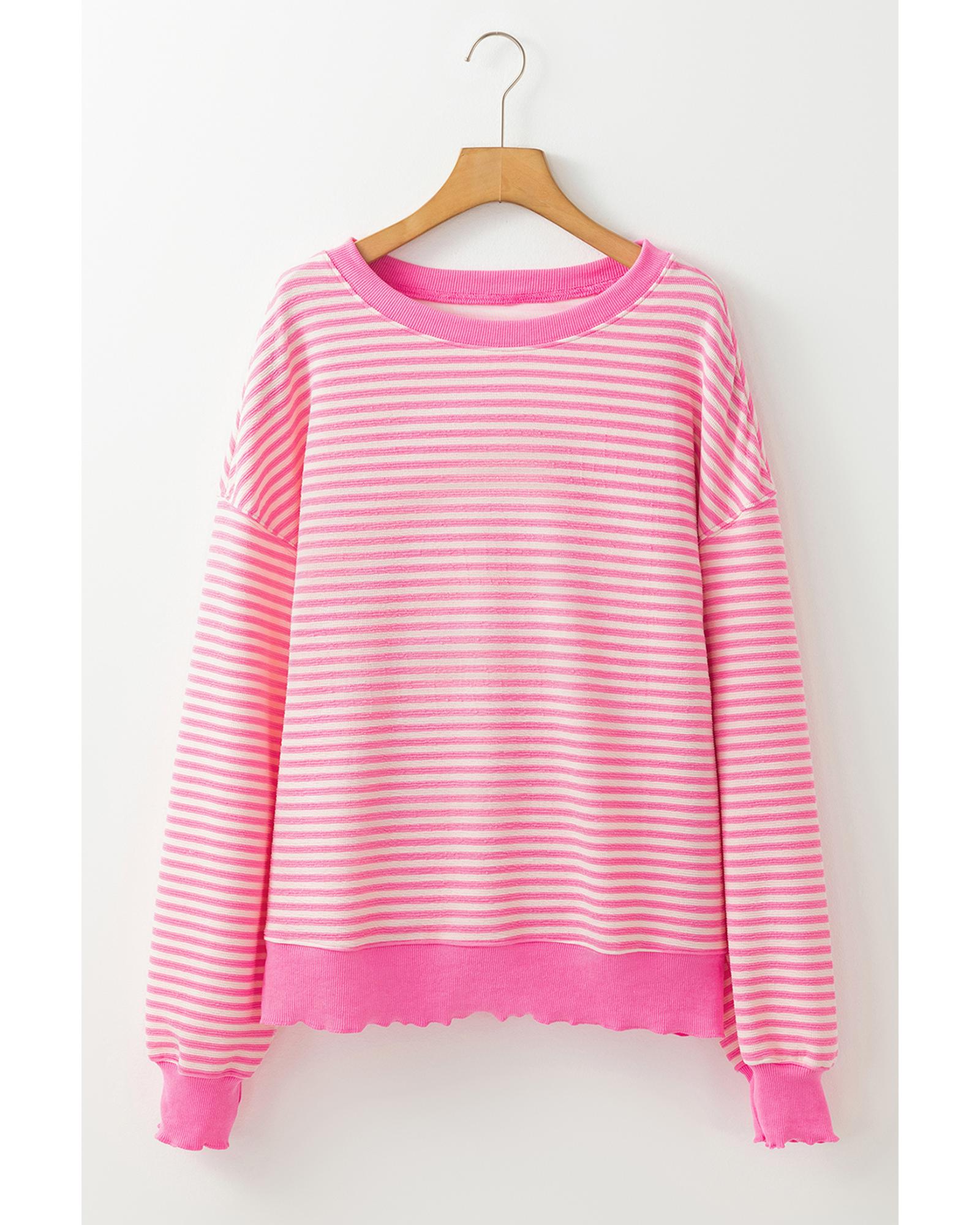 Azura Exchange Pink Stripe Loose Drop Shoulder Long Sleeve Top – L