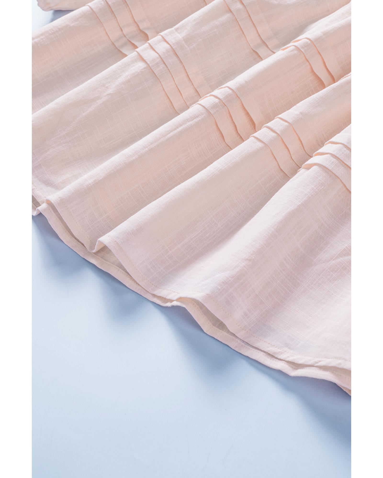 - Elegant Beige Puff Sleeve Eyelet Babydoll Blouse