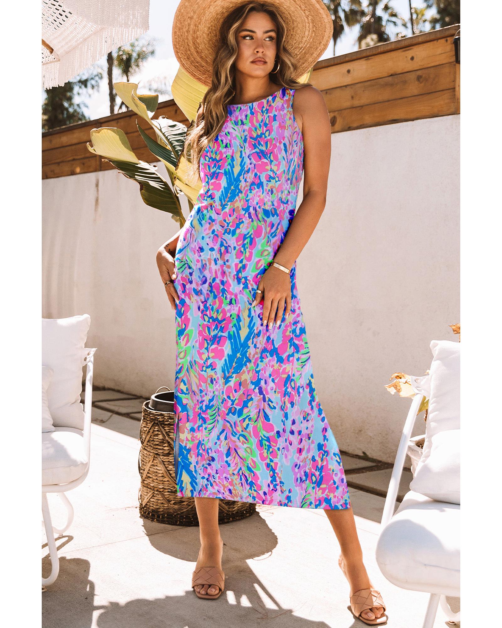 Azura Exchange Purple Abstract Floral Print Sleeveless Maxi Dress – XL