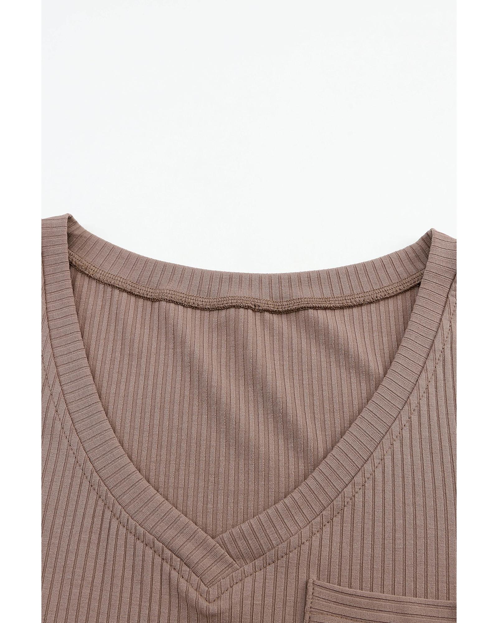 Azura Exchange Ribbed Knit Patched V Neck Top - XL