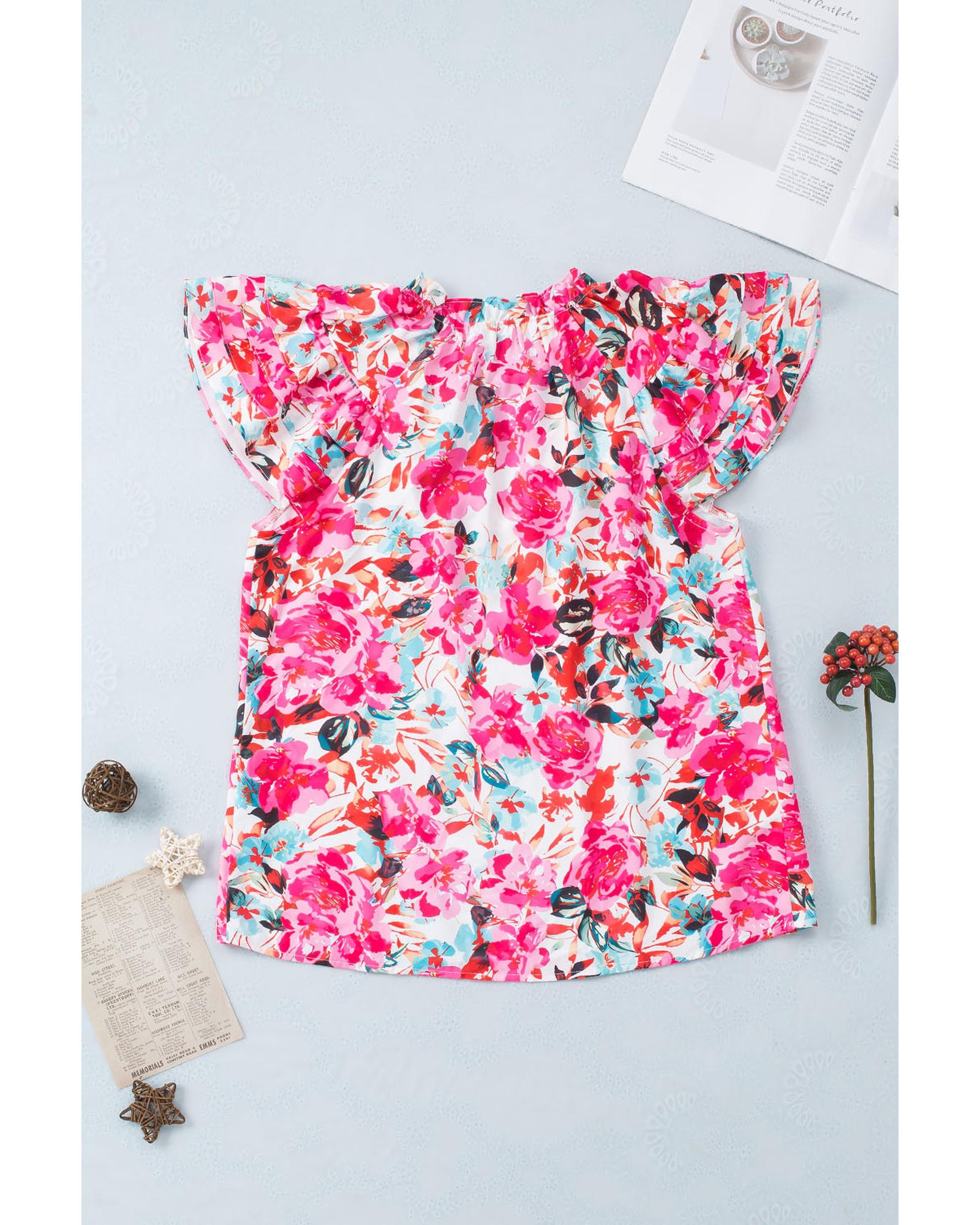 Azura Exchange Ruffle Flutter Sleeve Floral Print Blouse – L
