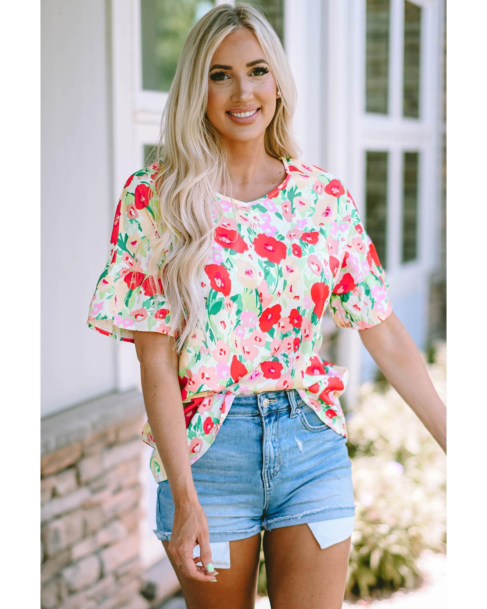 Azura Exchange Ruffled V Neck Floral Print Blouse – M