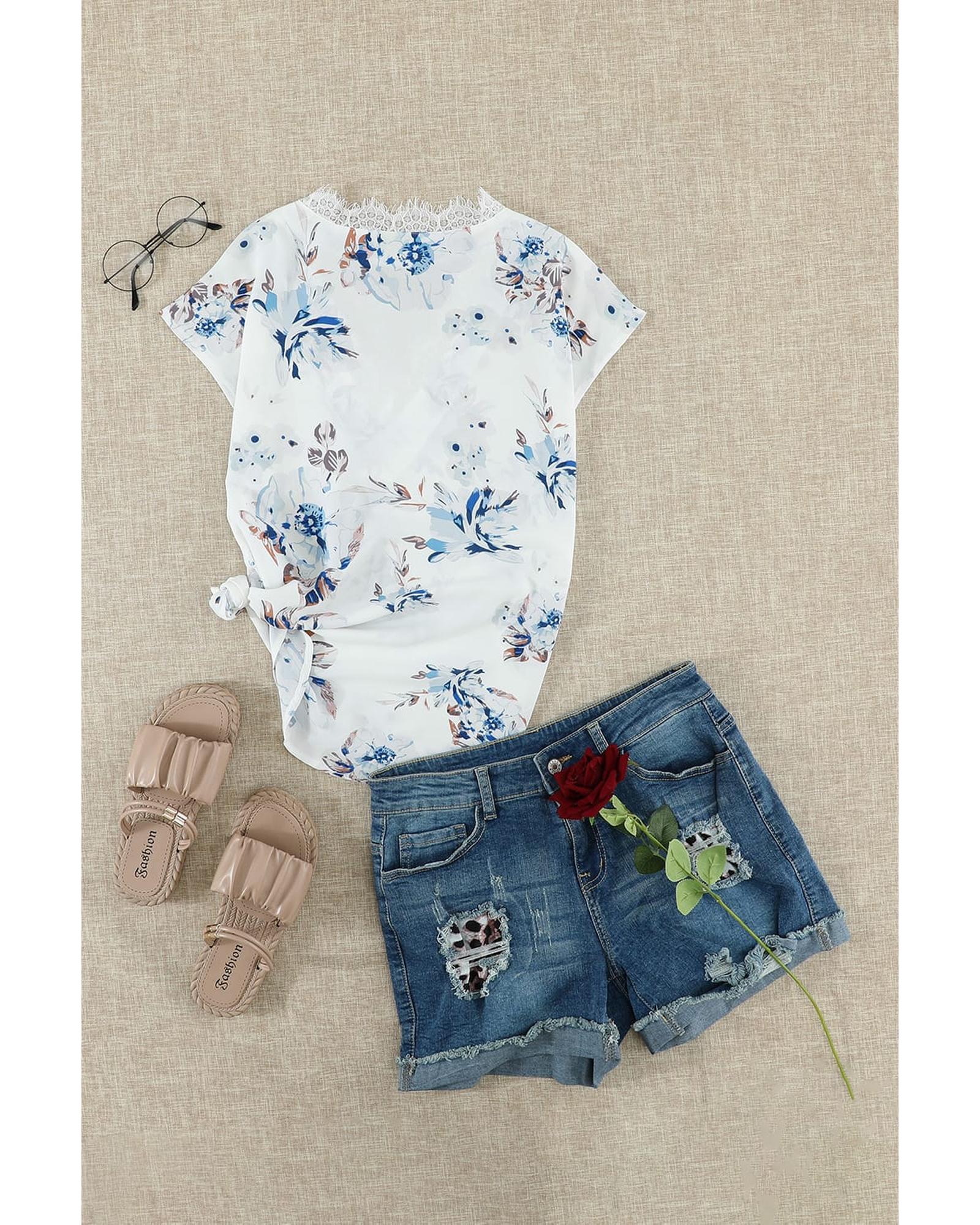 Azura Exchange Scalloped V Neck Short Sleeves Top – L