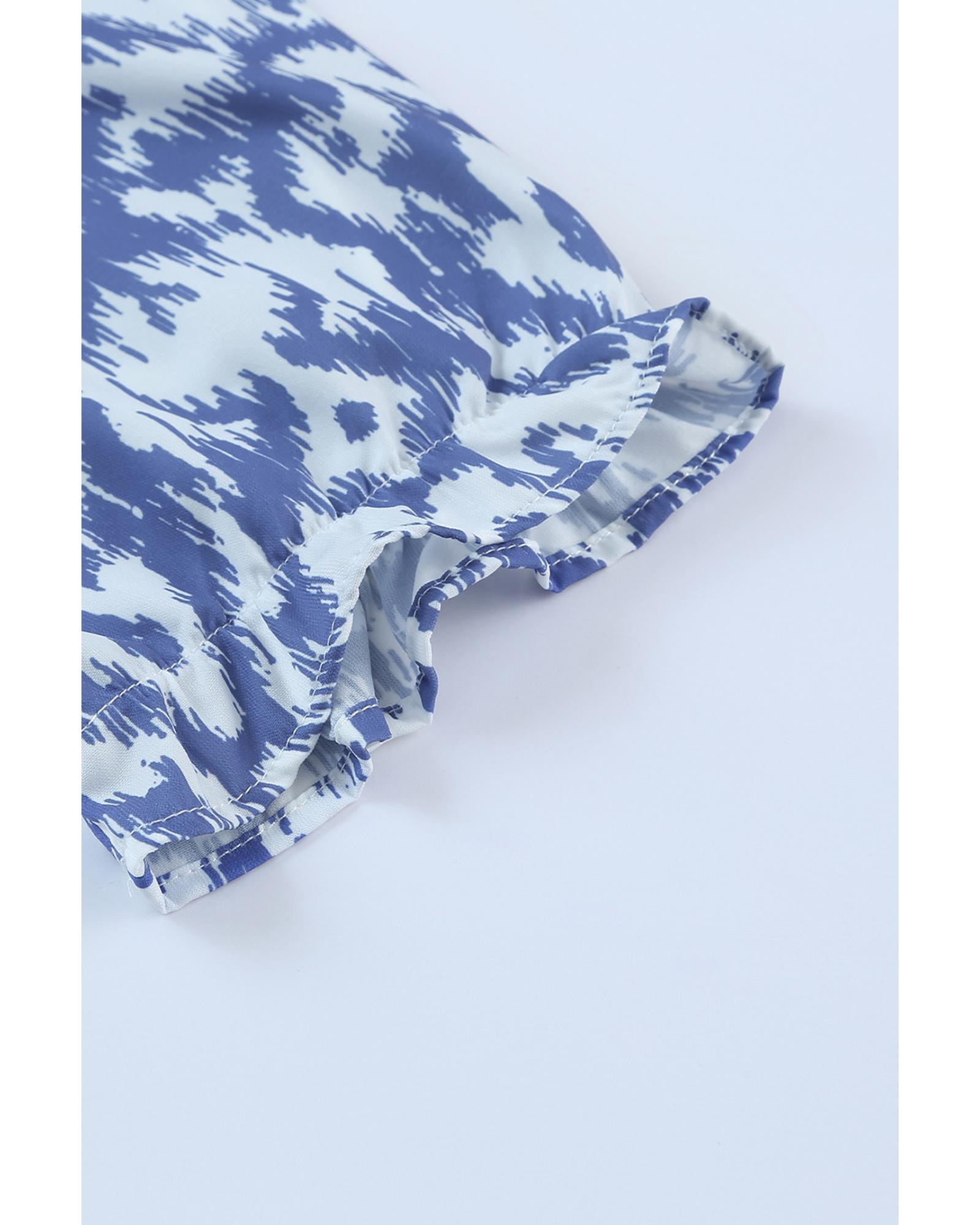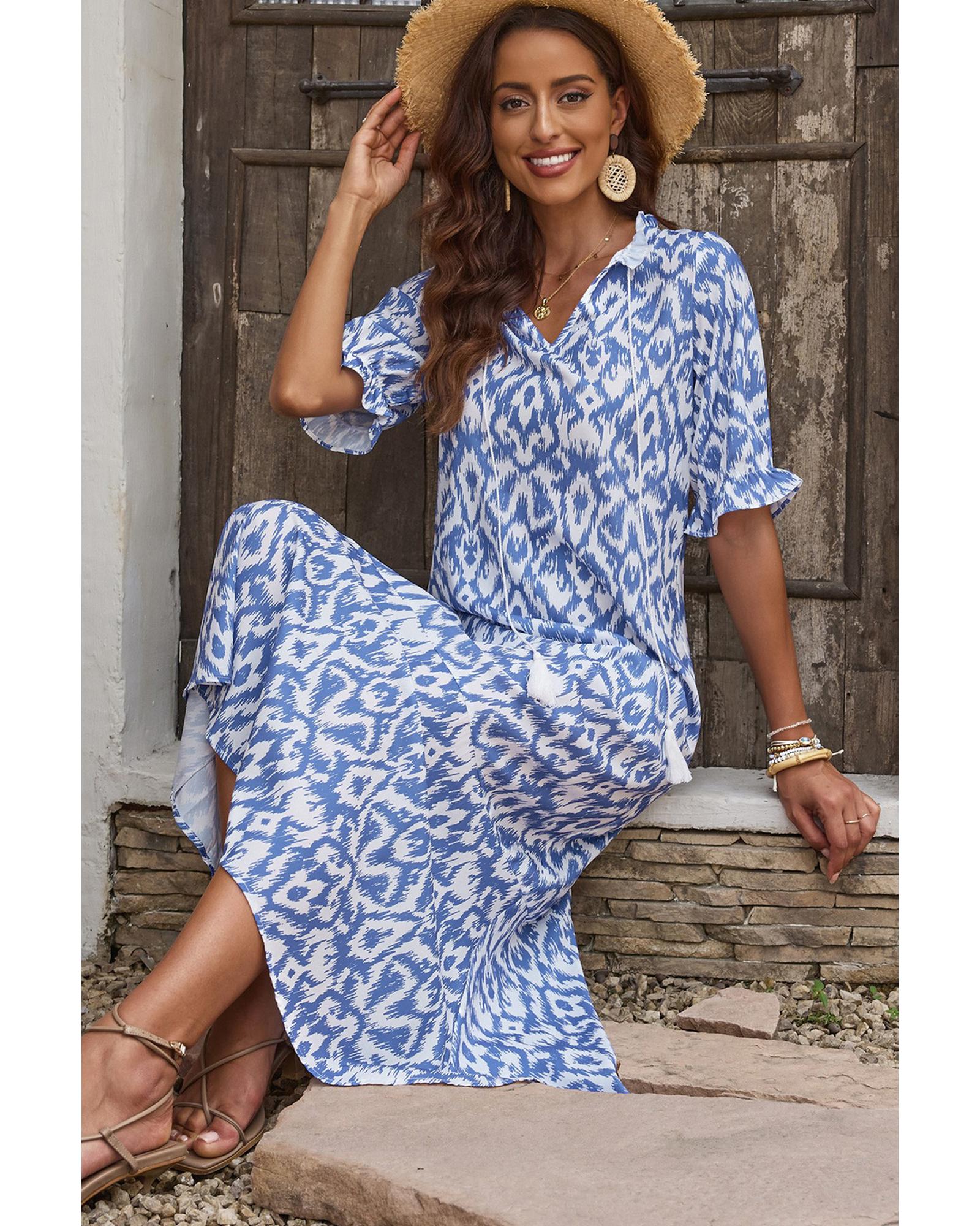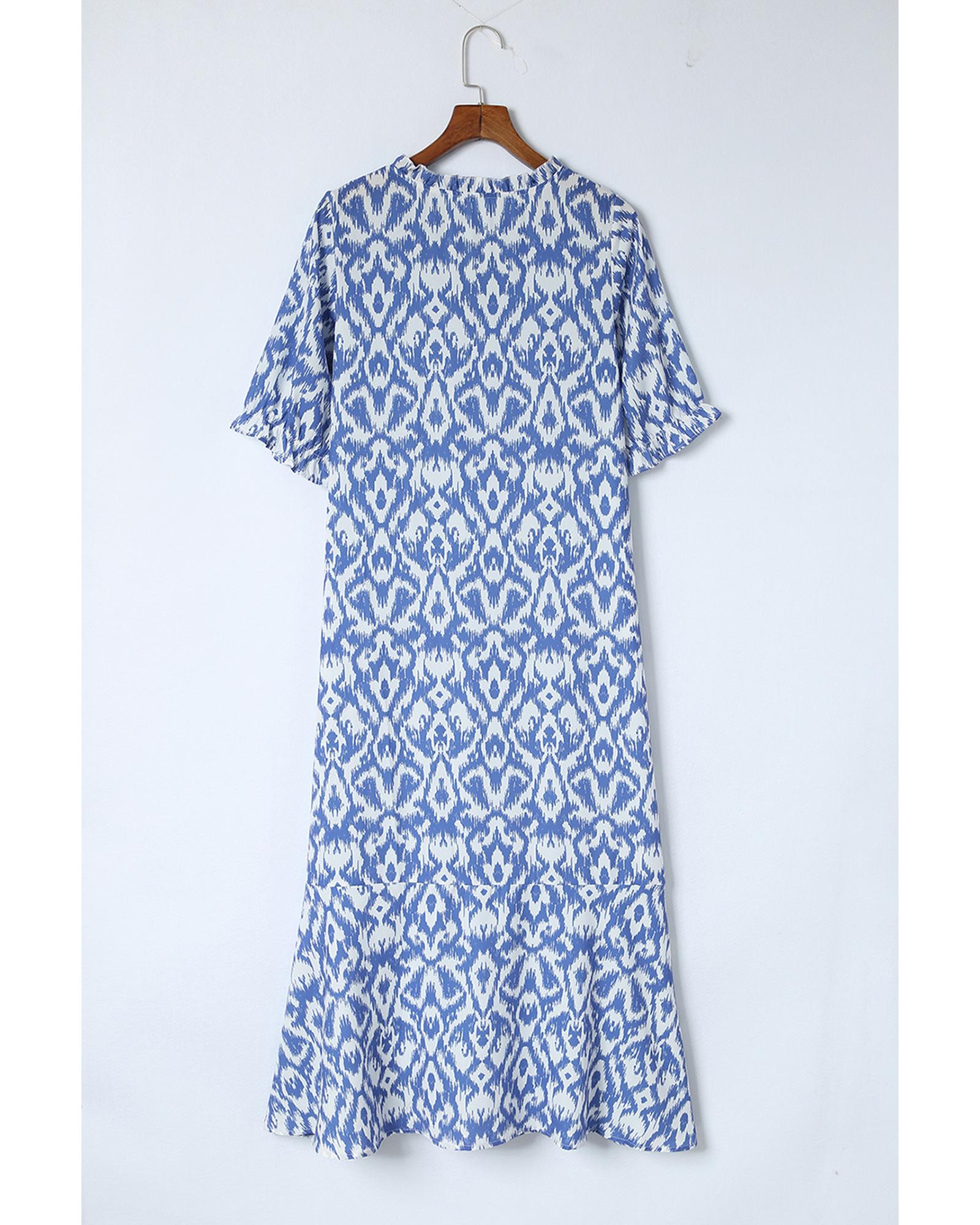 Azura Exchange Sky Blue V Neck Casual Geometric Print Maxi Dress – S