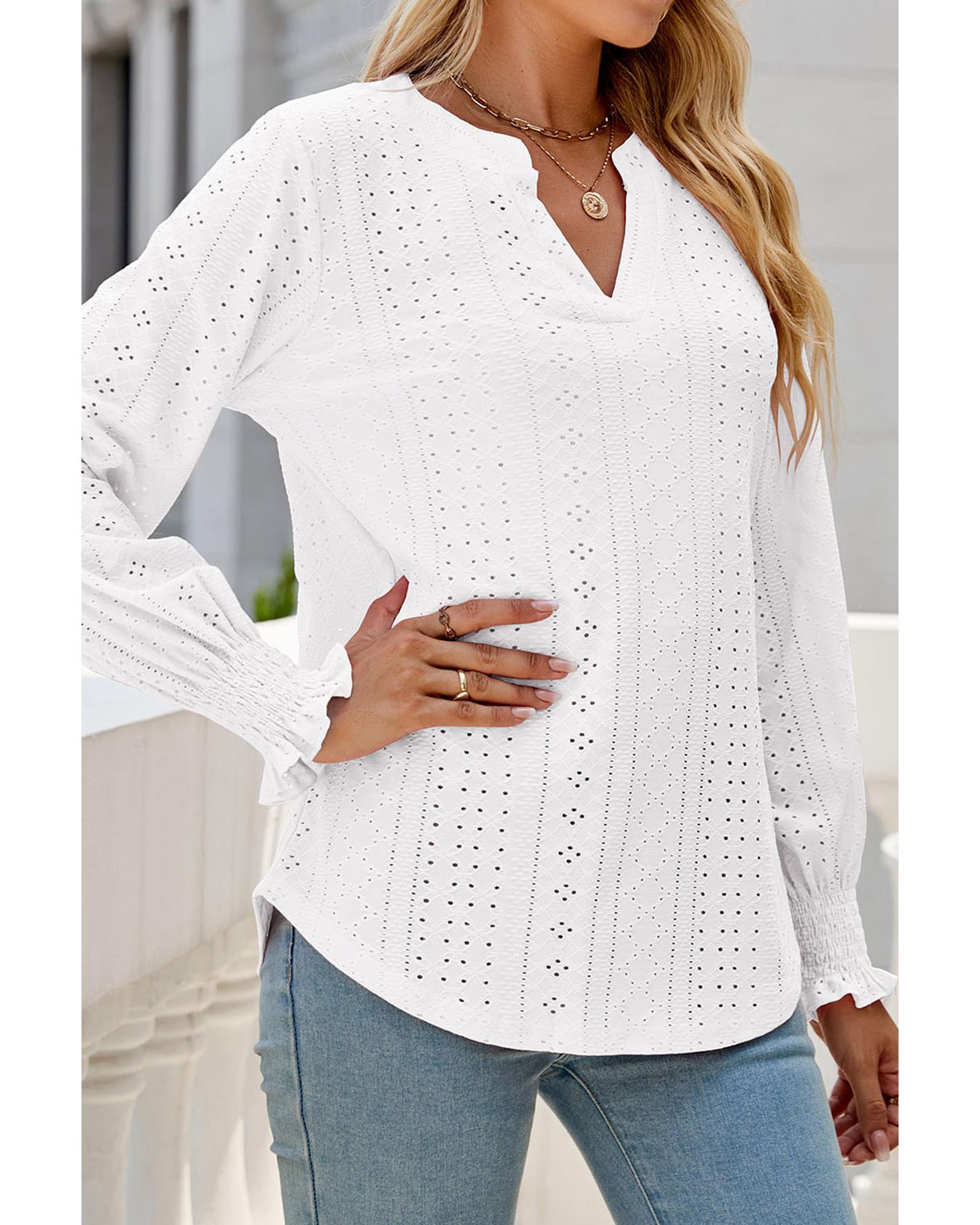 • Versatile and stylish White Split Neck Textured Loose Blouse