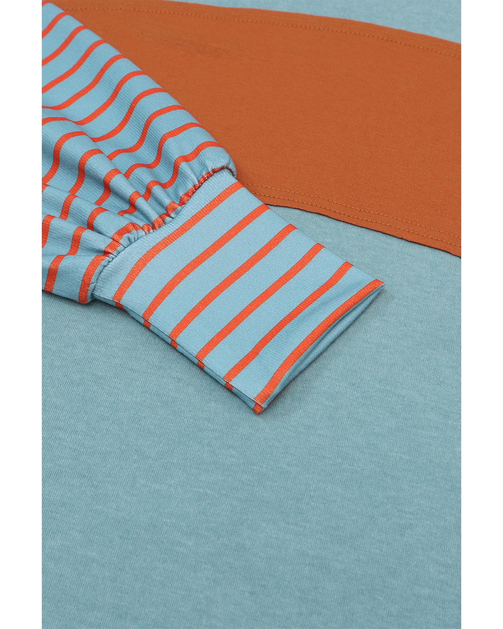 - Green Colorblock Striped Bishop Sleeve Top