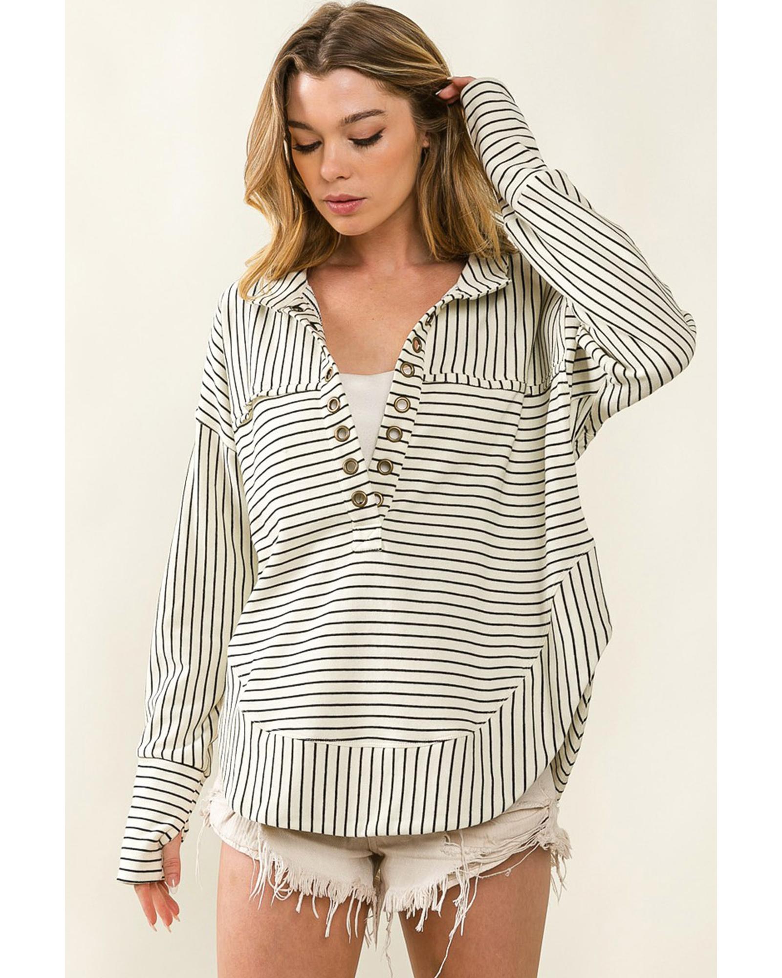 Azura Exchange Striped Thumbhole Drop Shoulder V Neck Top – XL