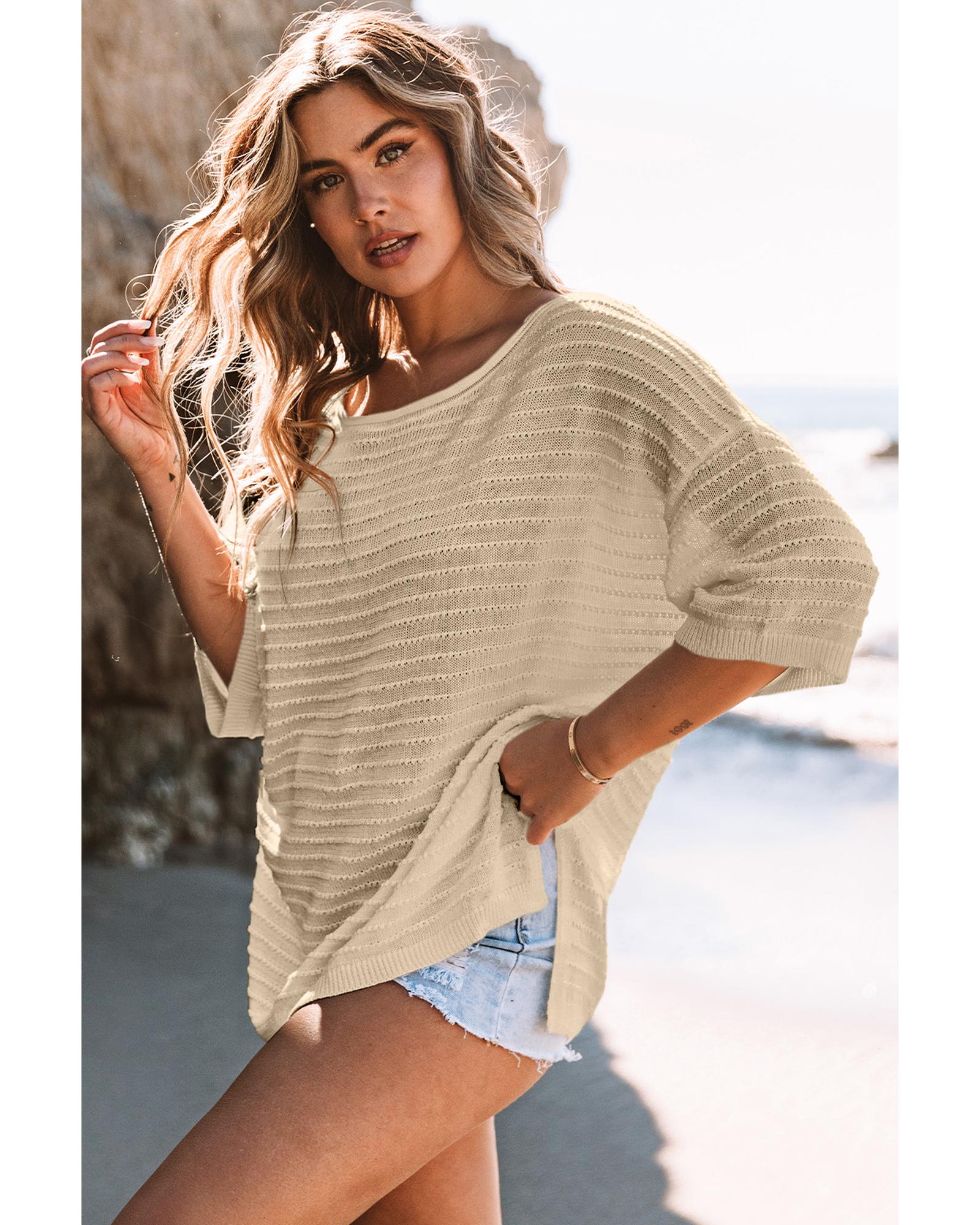 Azura Exchange Textured Knit Drop Shoulder Tee – L