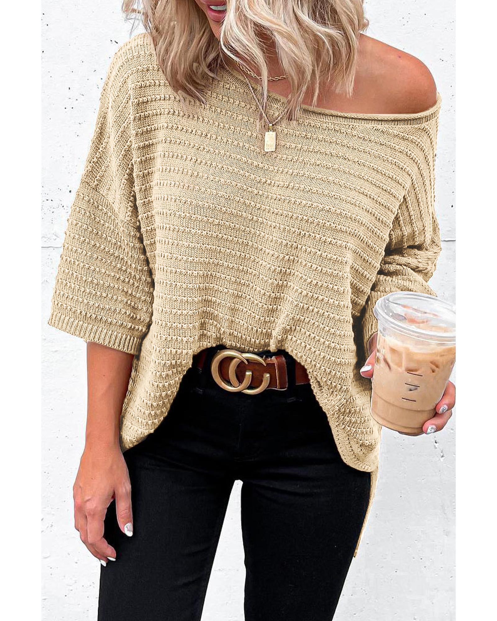 • Luxurious Textured Knit Drop Shoulder Tee