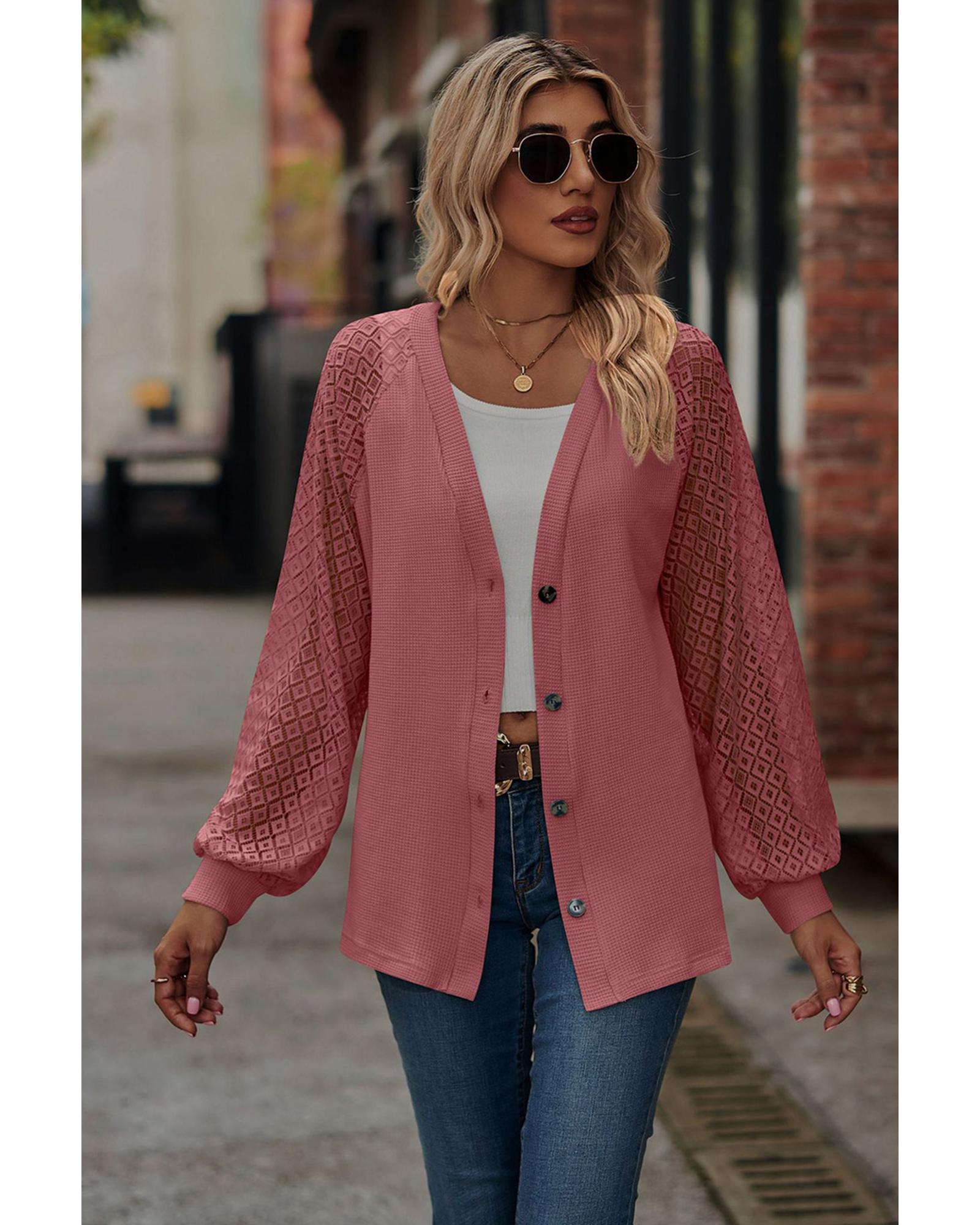 Azura Exchange Waffled Knit Lace Long Sleeve Buttoned Cardigan – L