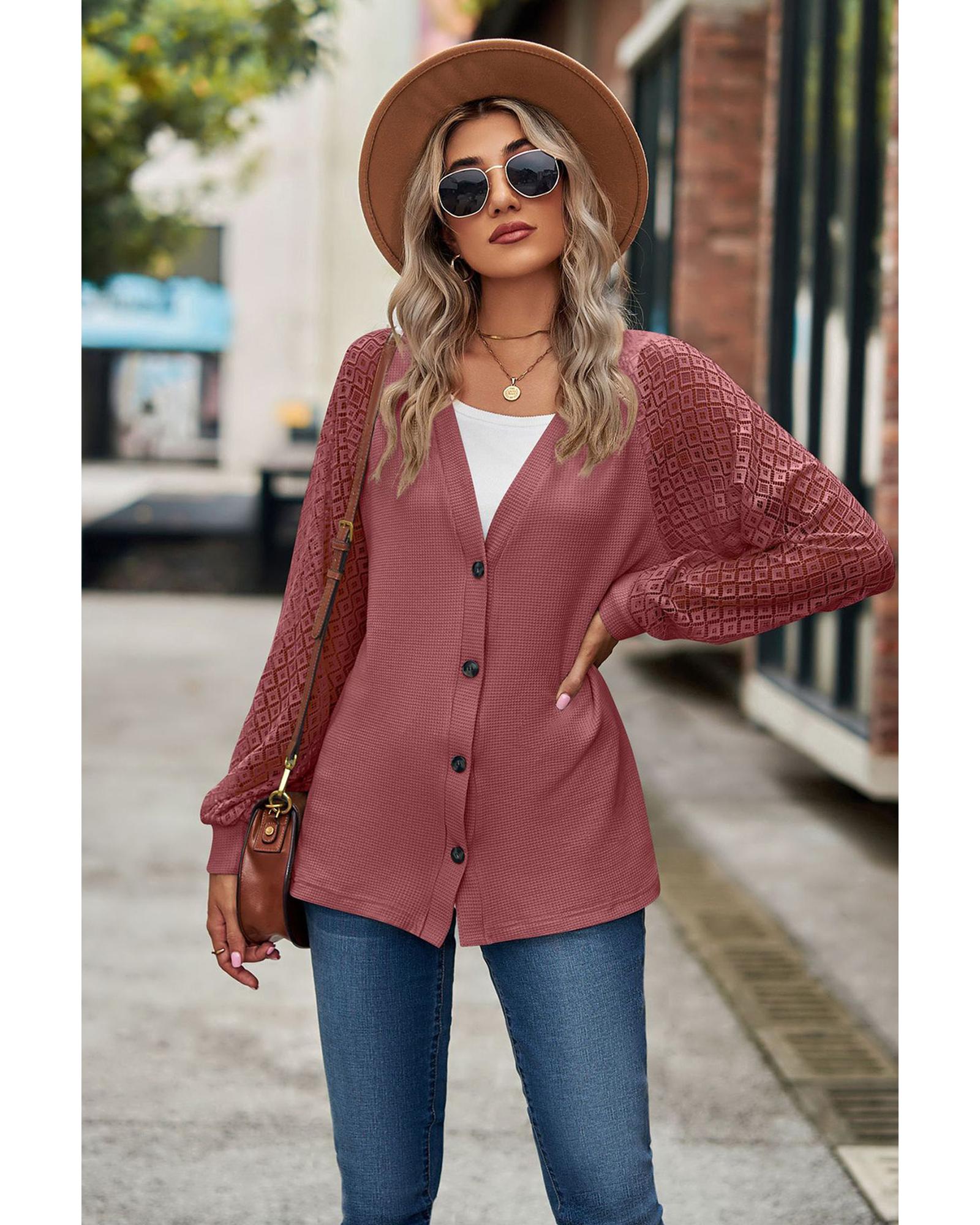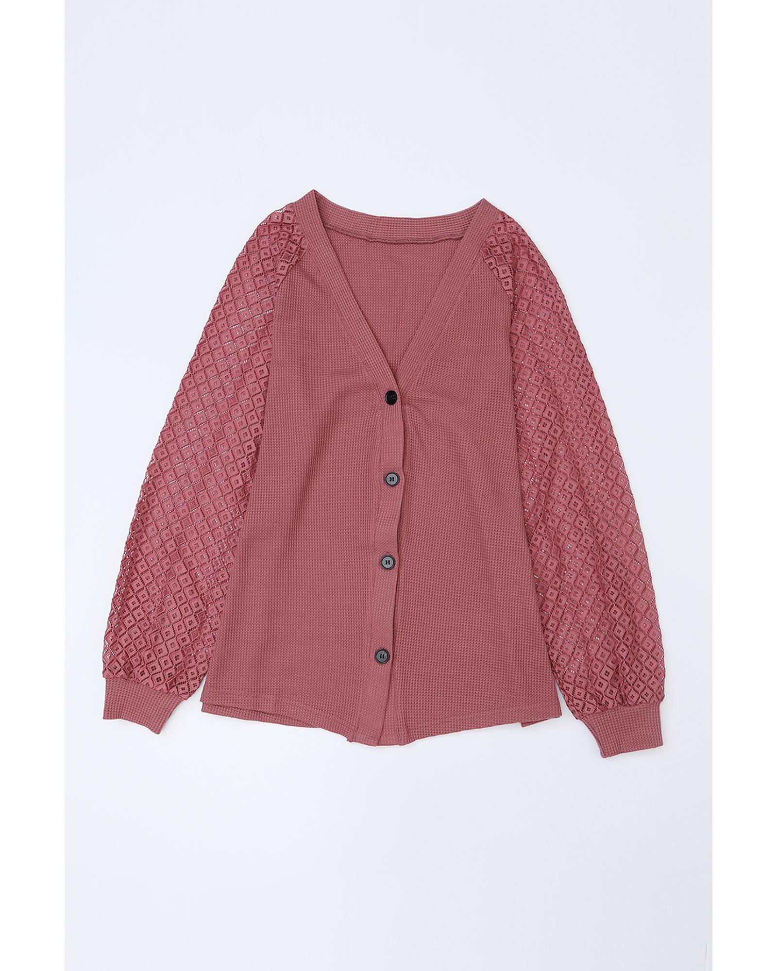 Azura Exchange Waffled Knit Lace Long Sleeve Buttoned Cardigan – XL