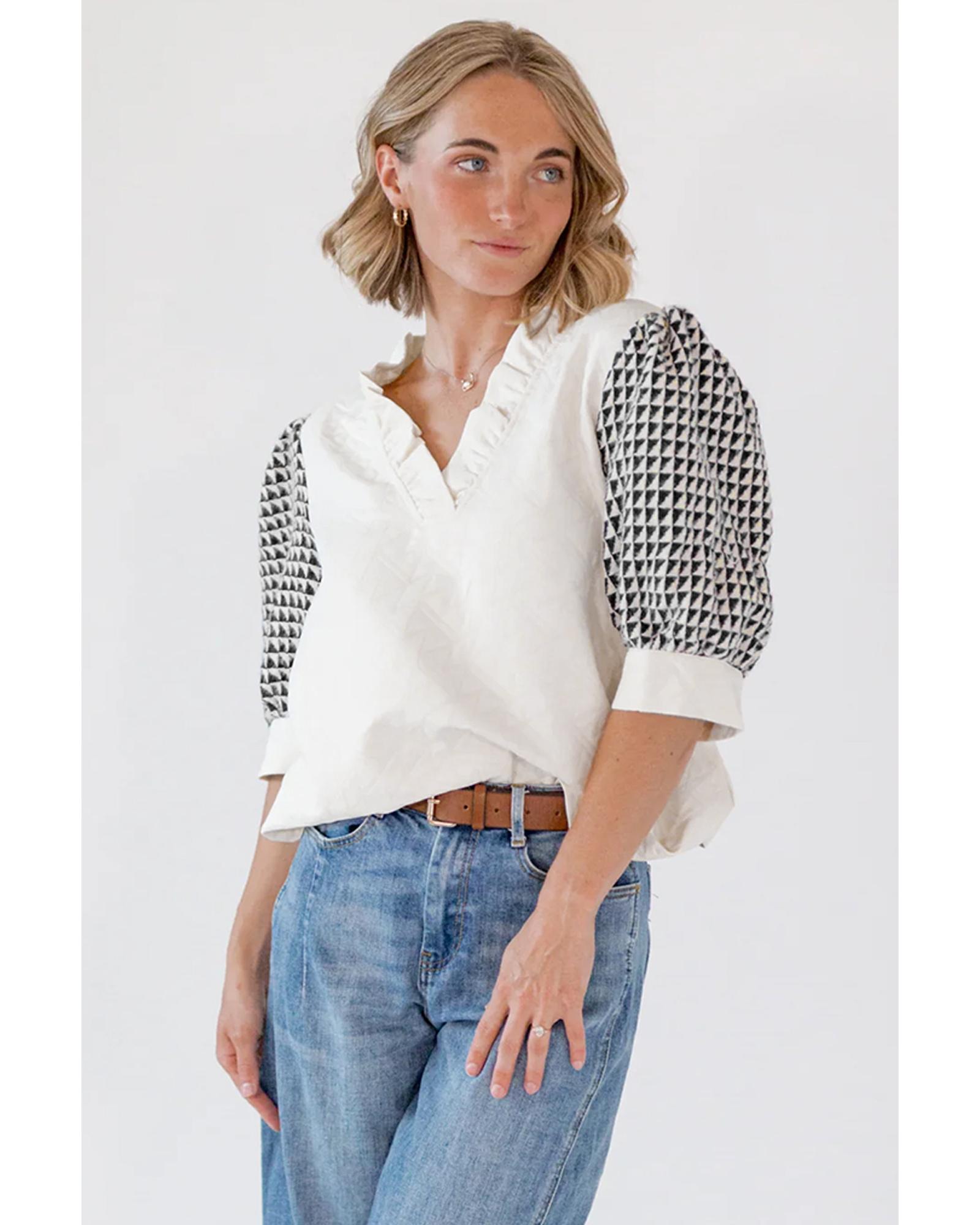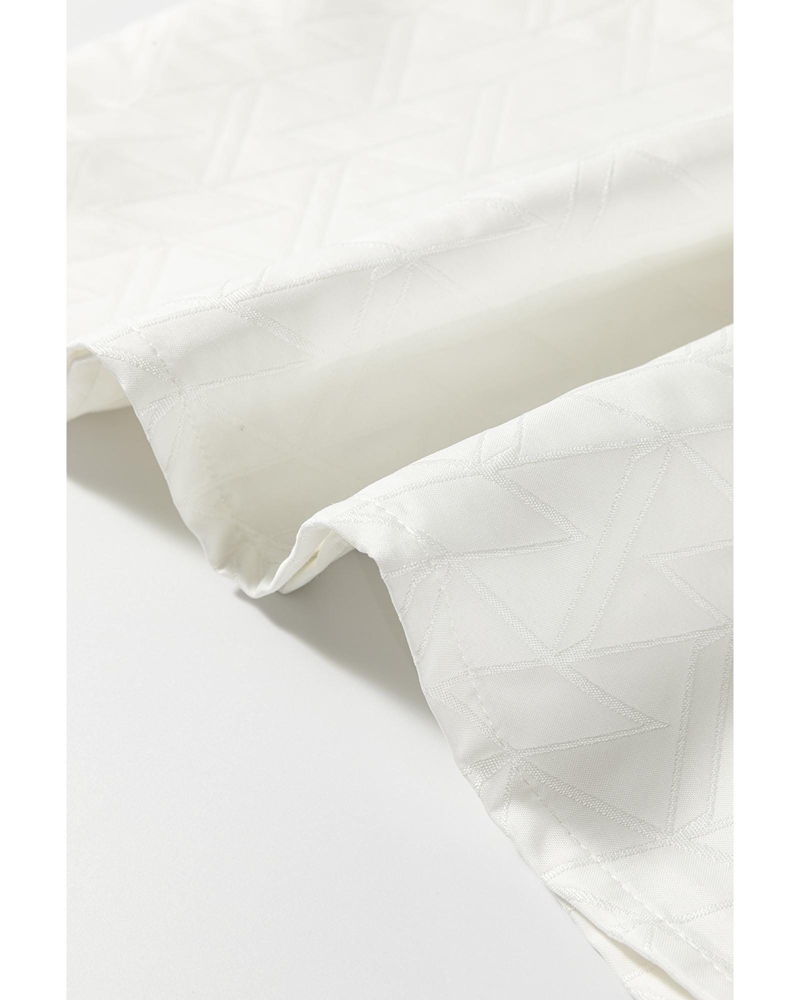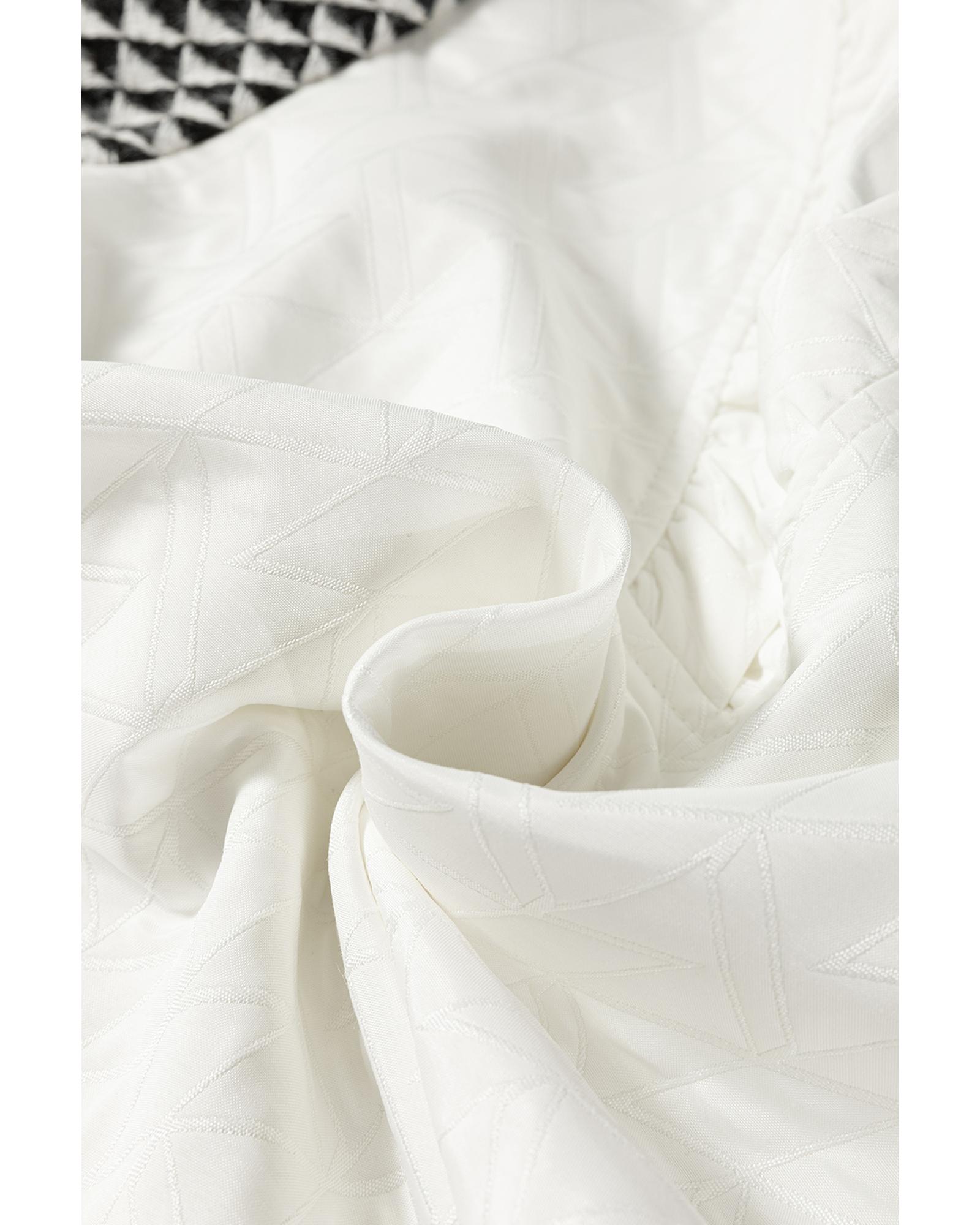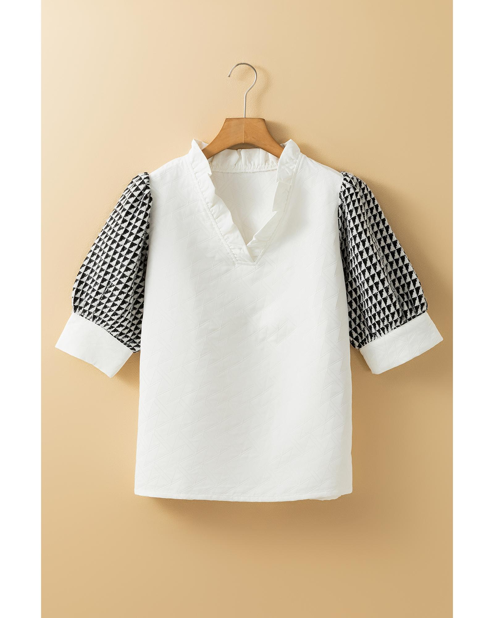 - White geometric textured short sleeve blouse