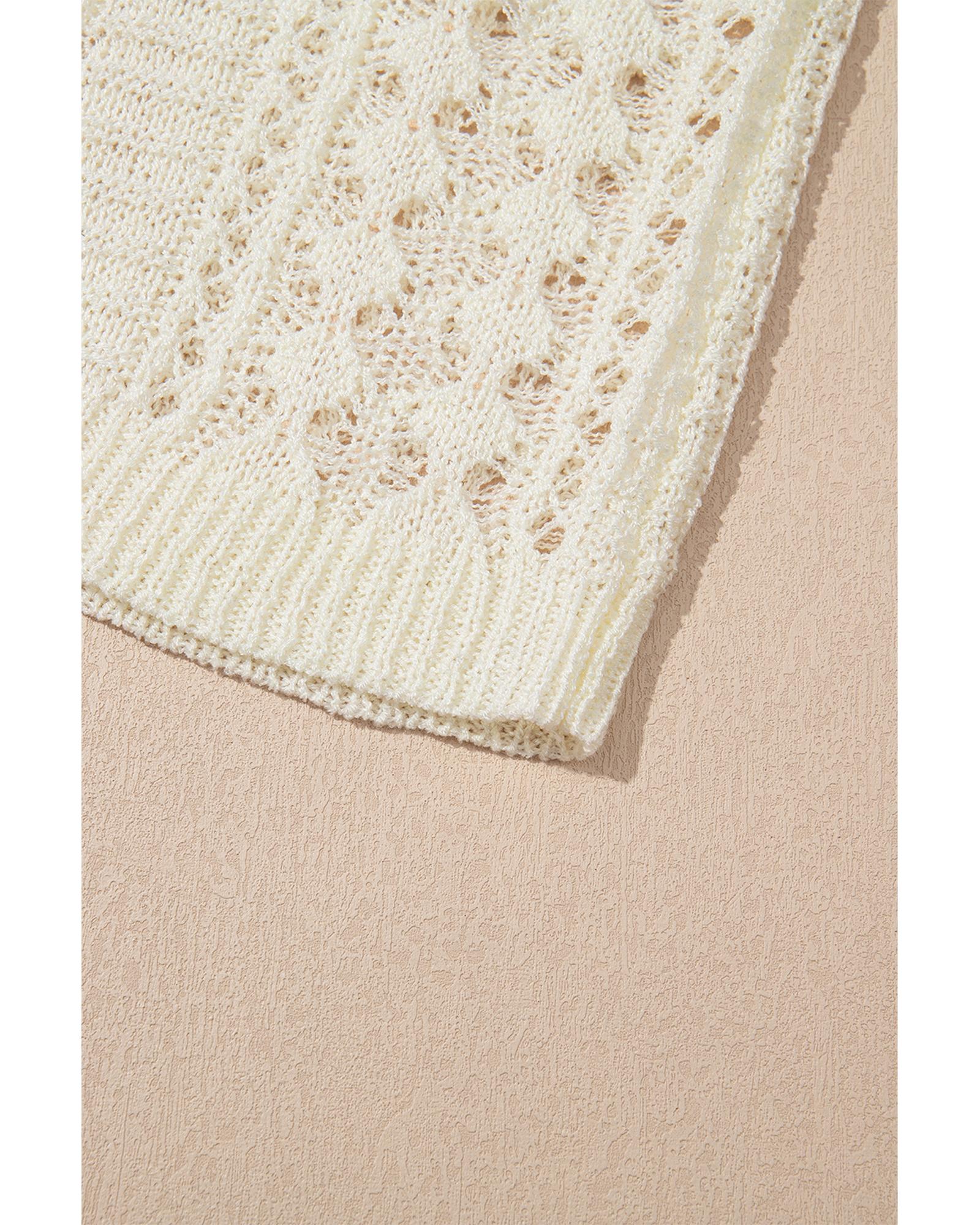 Azura Exchange White Hollow Out Knit Bracelet Sleeve Drop Shoulder Sweater – M