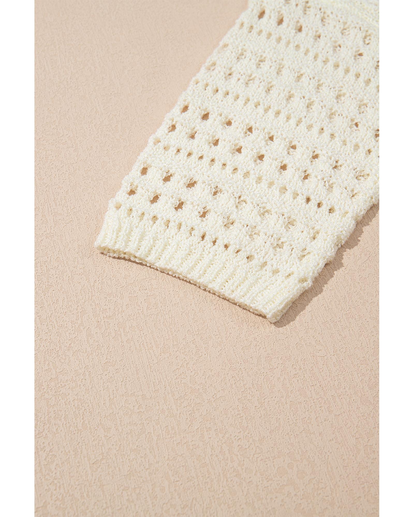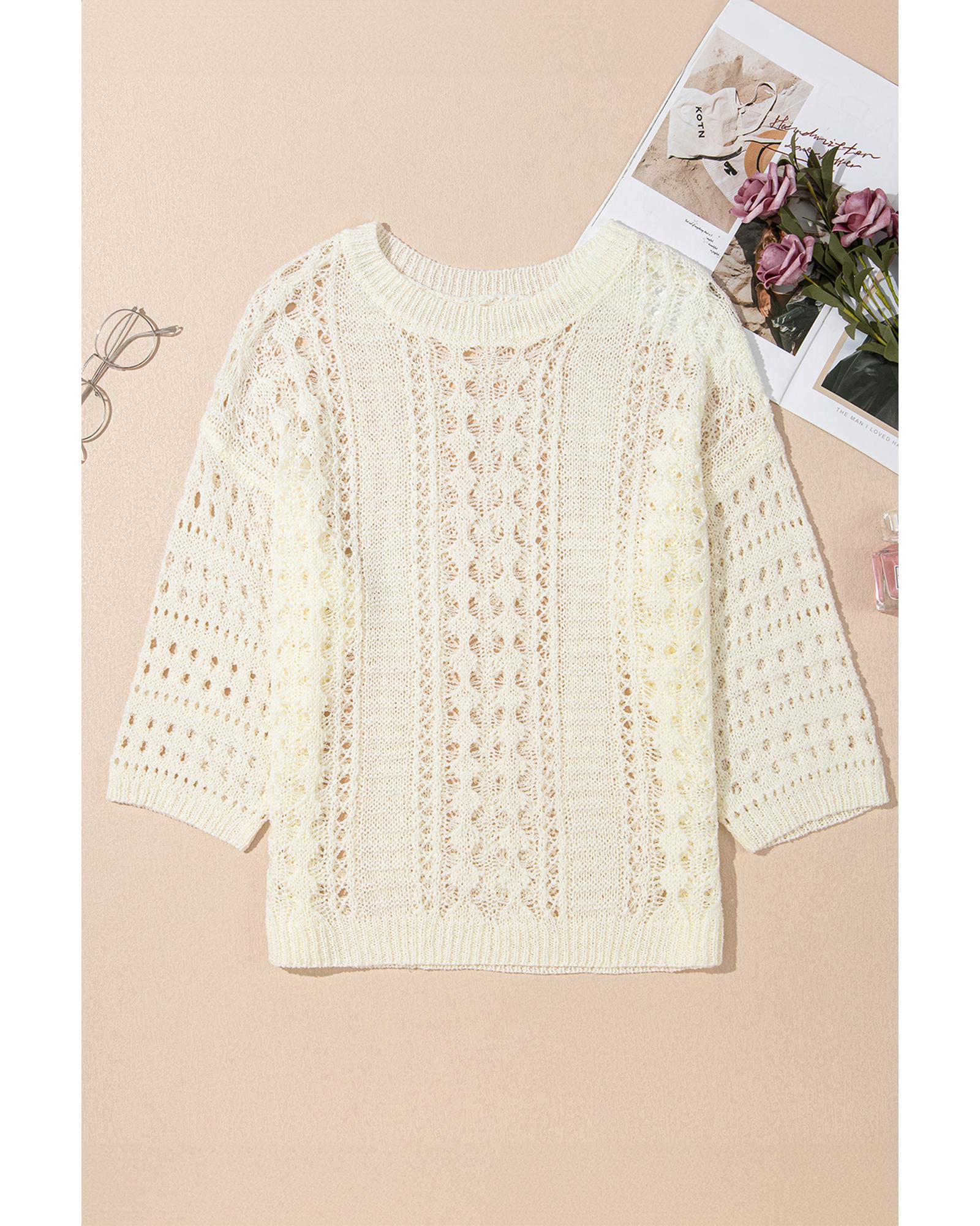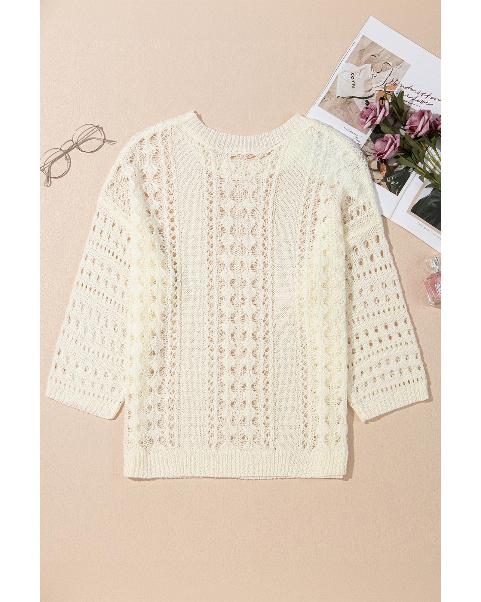 Azura Exchange White Hollow Out Knit Bracelet Sleeve Drop Shoulder Sweater – XL