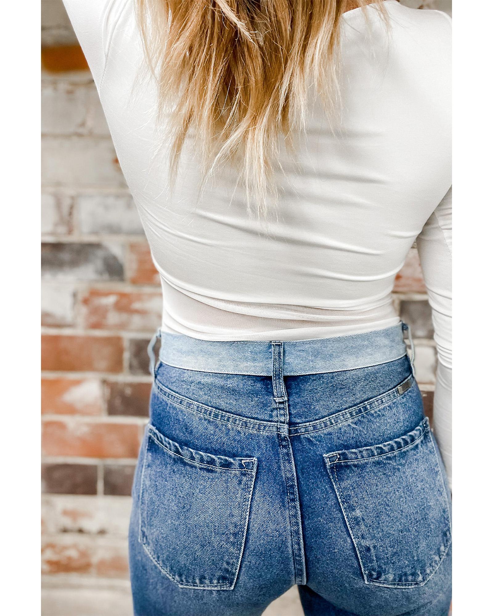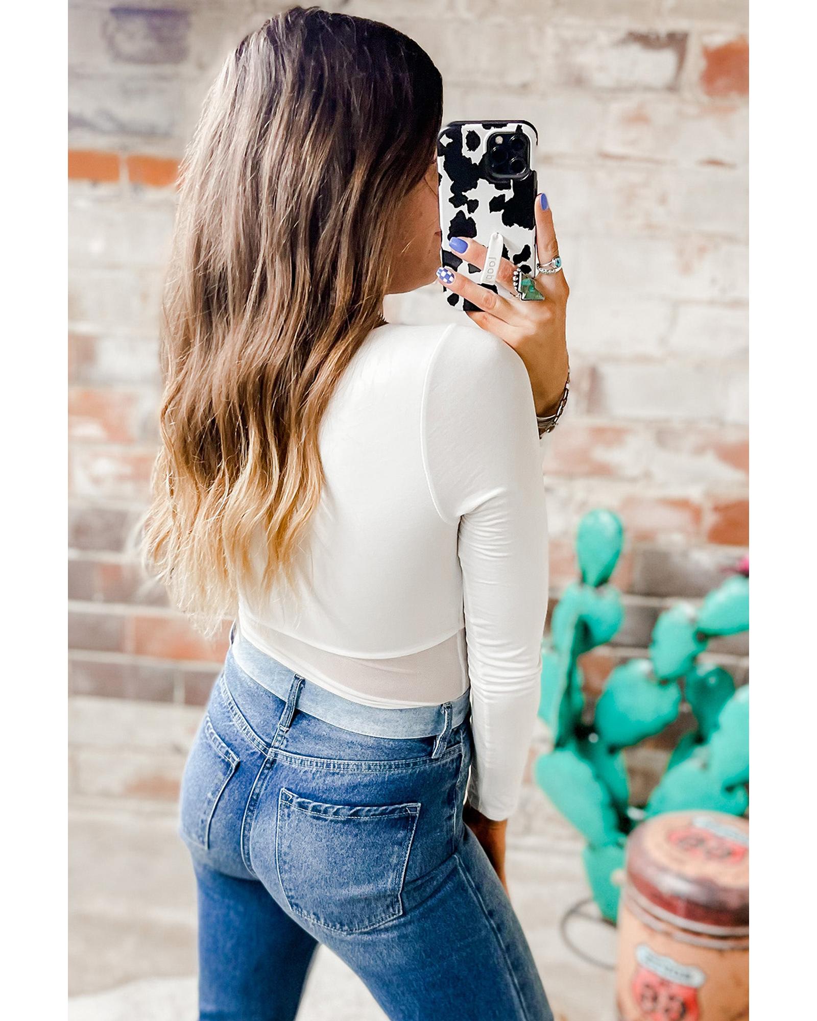 Azura Exchange White Mesh Patchwork Long Sleeve Bodysuit – M