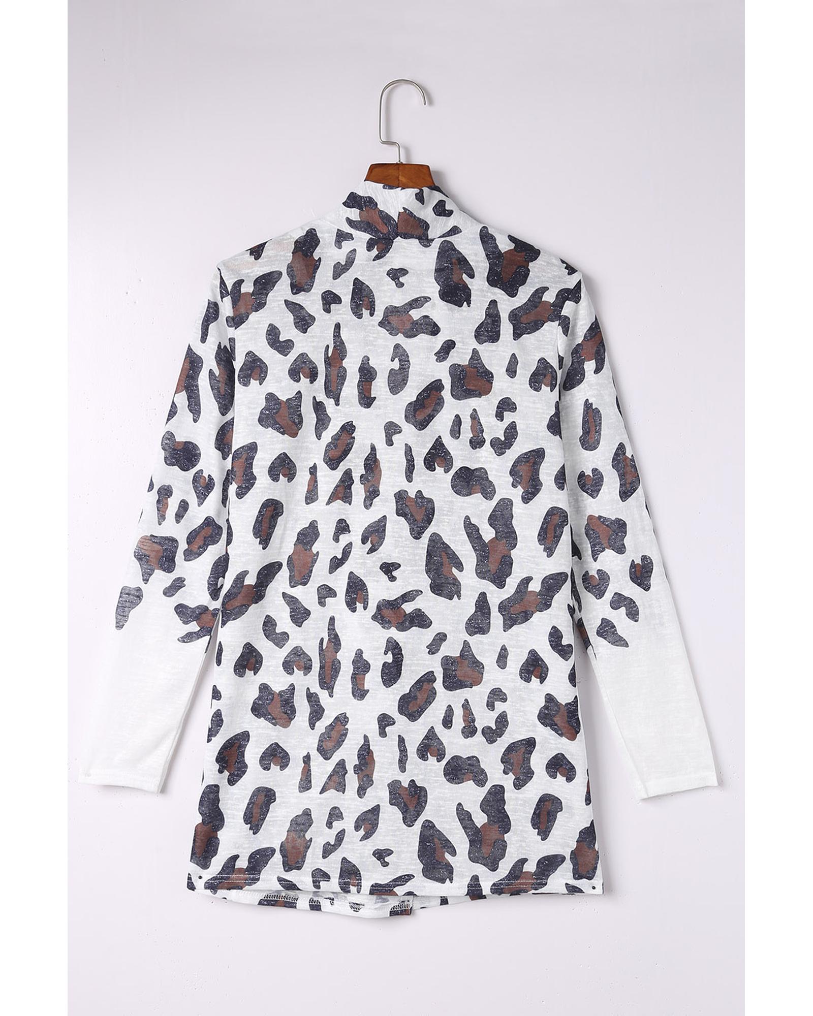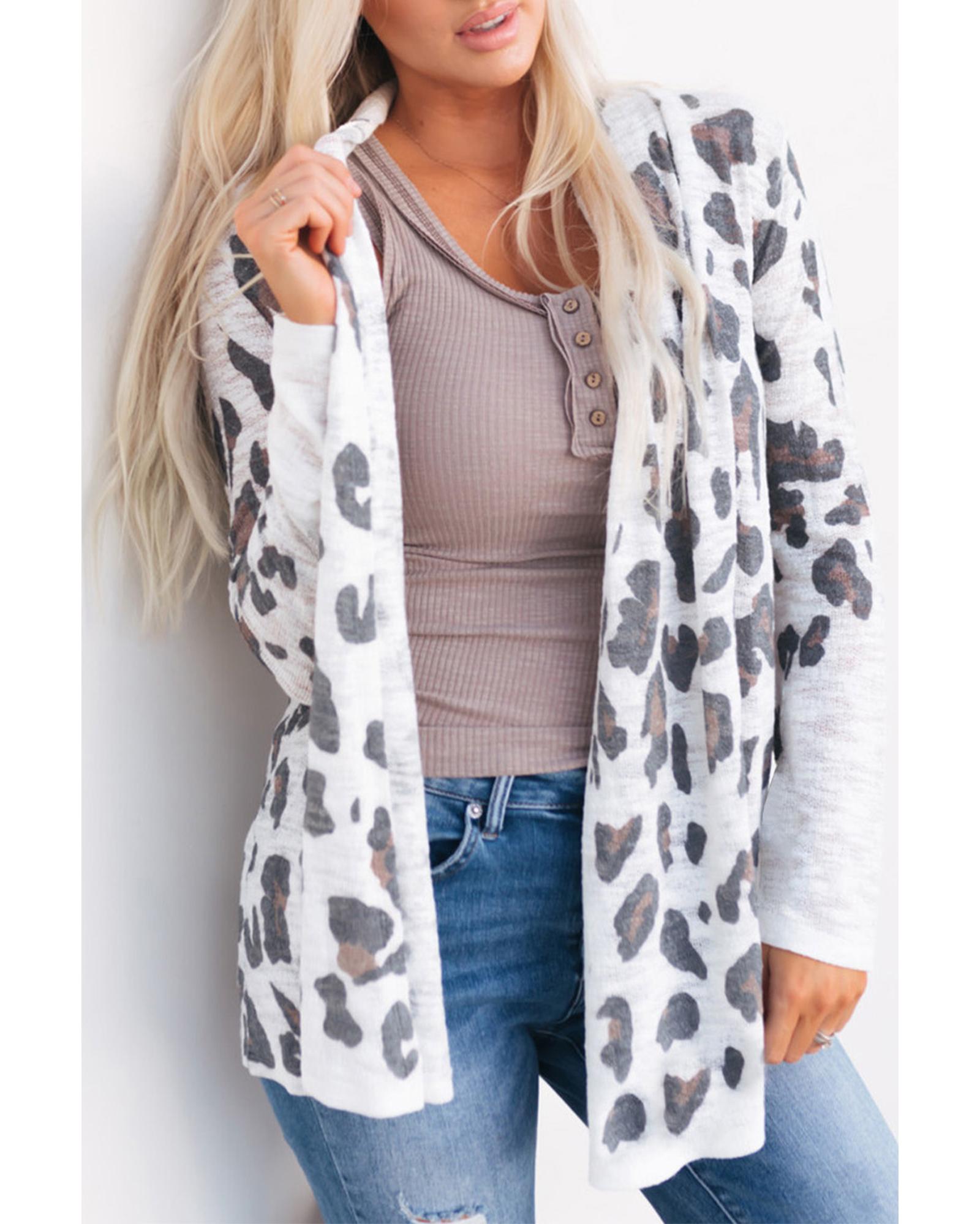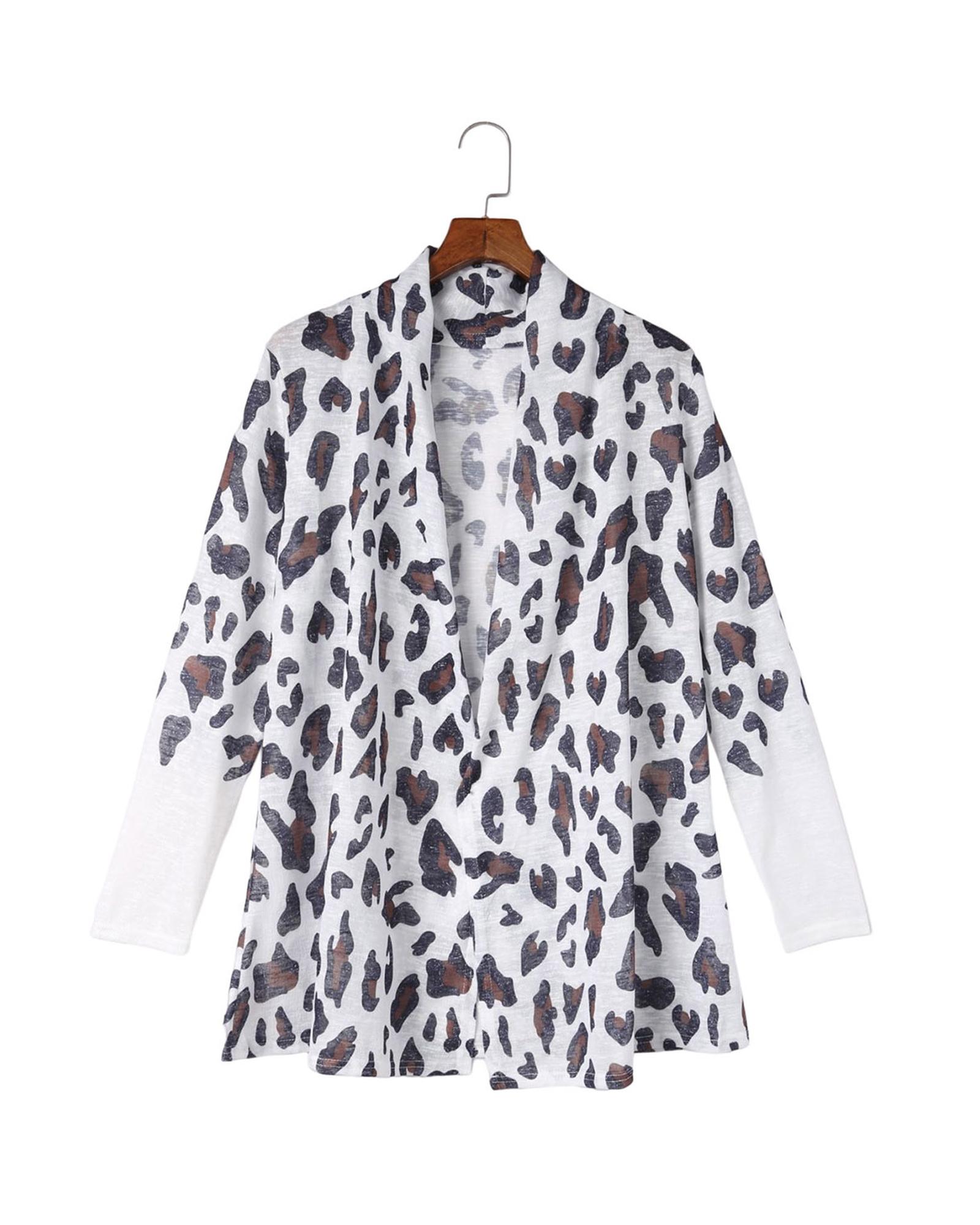 Azura Exchange White Vintage Leopard Print Open Cardigan – L