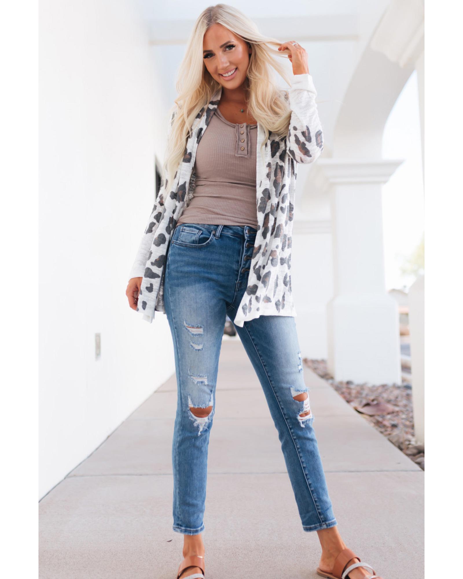 Azura Exchange White Vintage Leopard Print Open Cardigan – XL