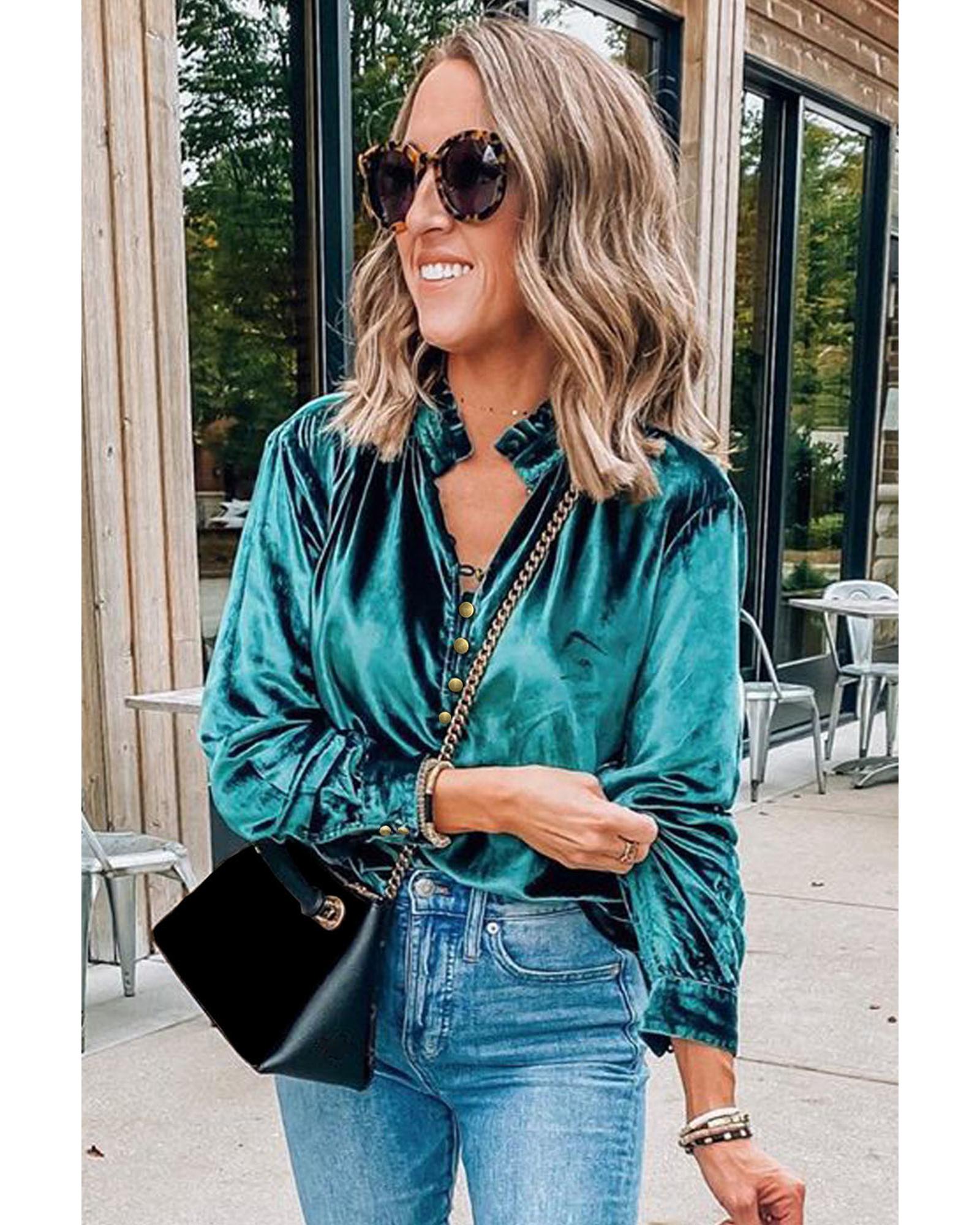 Azura Exchange Womens Green Velvet Blouse – M