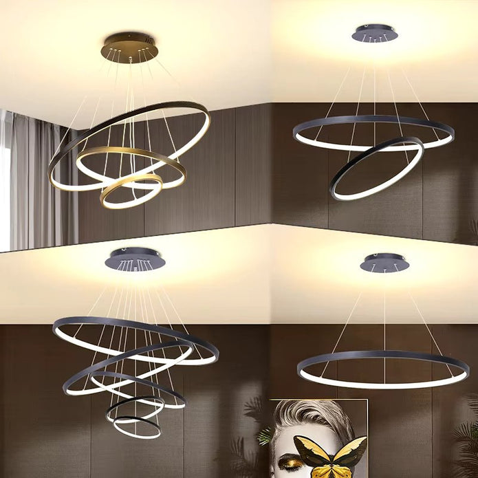 BAMDECOR 18801 Modern LED Chandelier, Dimmable Pendant Light with Remote Control Rings Round Ceiling Lighting Fixture 3 Color Temperatures Contemporary Chandeliers (3 Rings-Black)