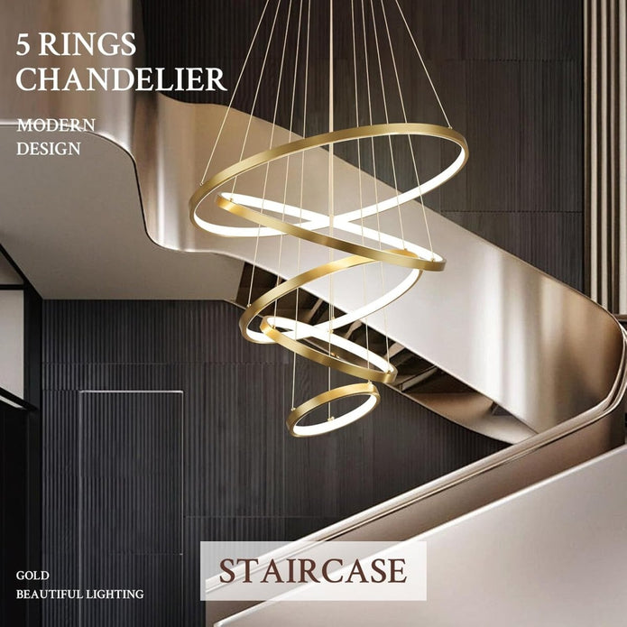 BAMDECOR A18801 Modern LED Chandelier, Dimmable Pendant Light with Remote Control Rings Round Ceiling Lighting Fixture 3 Color Temperatures Contemporary Chandeliers (5 Rings-Gold)