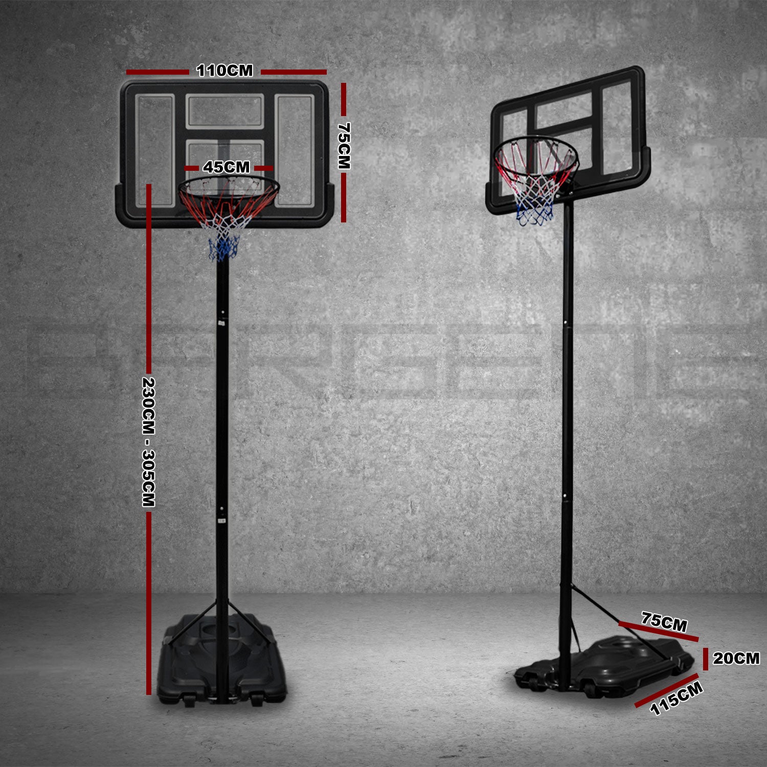 - Backboard Size: 110cm x 75cm