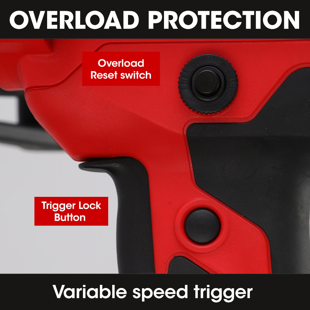 - Variable speed trigger with 1900RPM maximum speed for relentless power