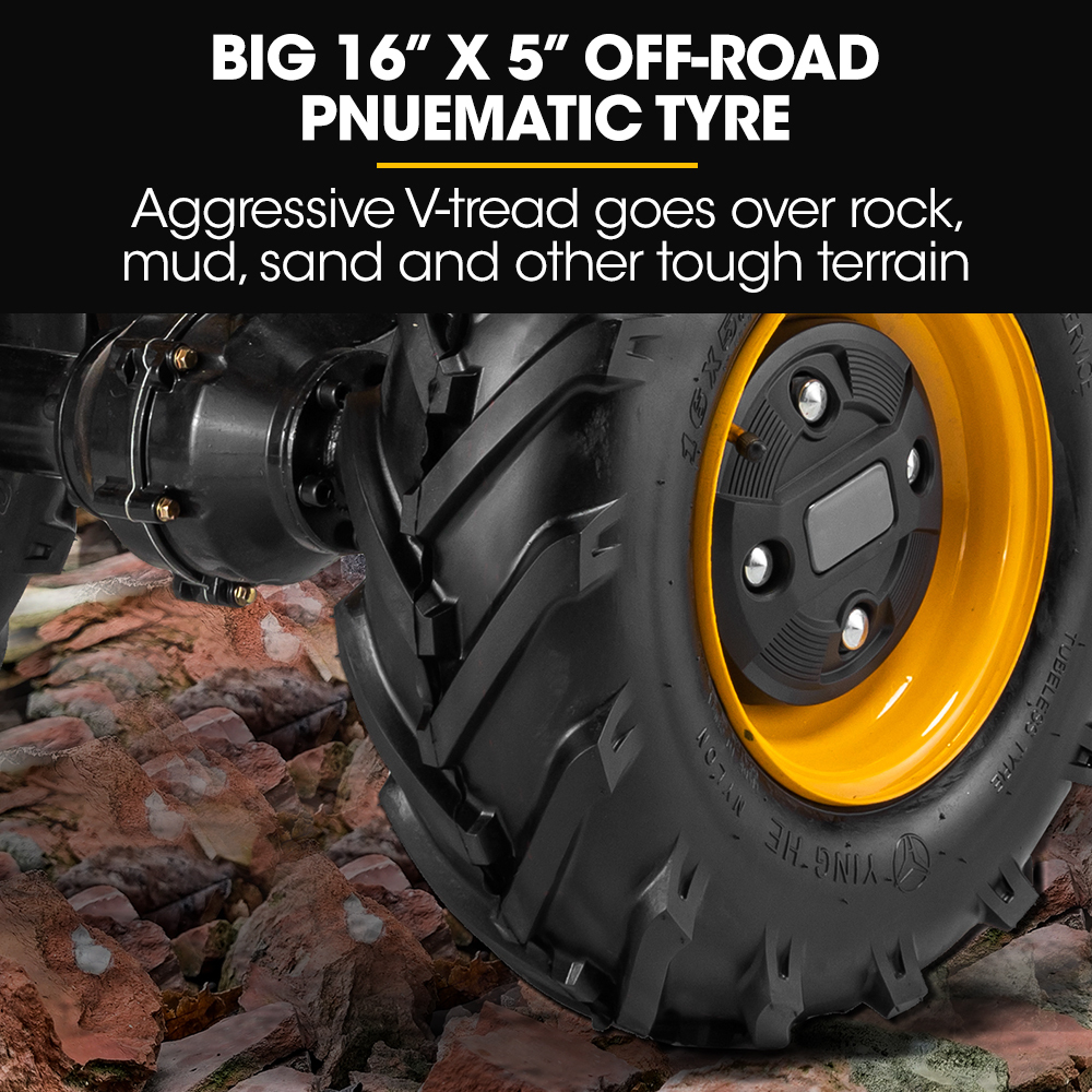 • Front Tyre Size: 16 x 5 Inch Deep V-tread Pneumatic