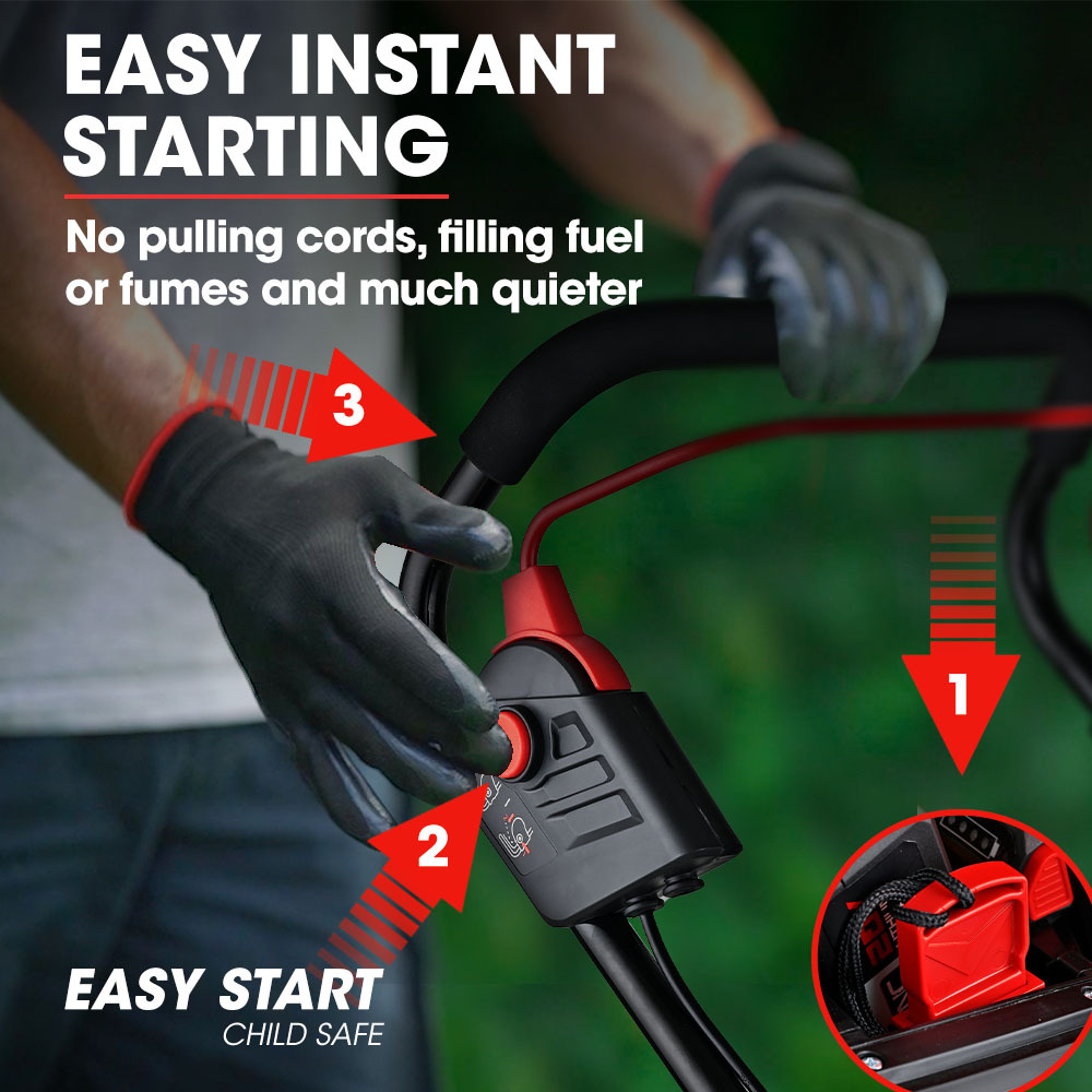 With the pull of a lever you can select from 5 mowing heights. The 52L sized catcher means you can get the lawn done faster with less frequent emptying, The 500CX also features angle-adjustable handles for tailoring to your perfect height. And when you’re done, quick-release folding handles allow for easy storage. This innovative compact mower combines cutting-edge technology with user-friendly features, making it a great choice for those with modest sized lawns.