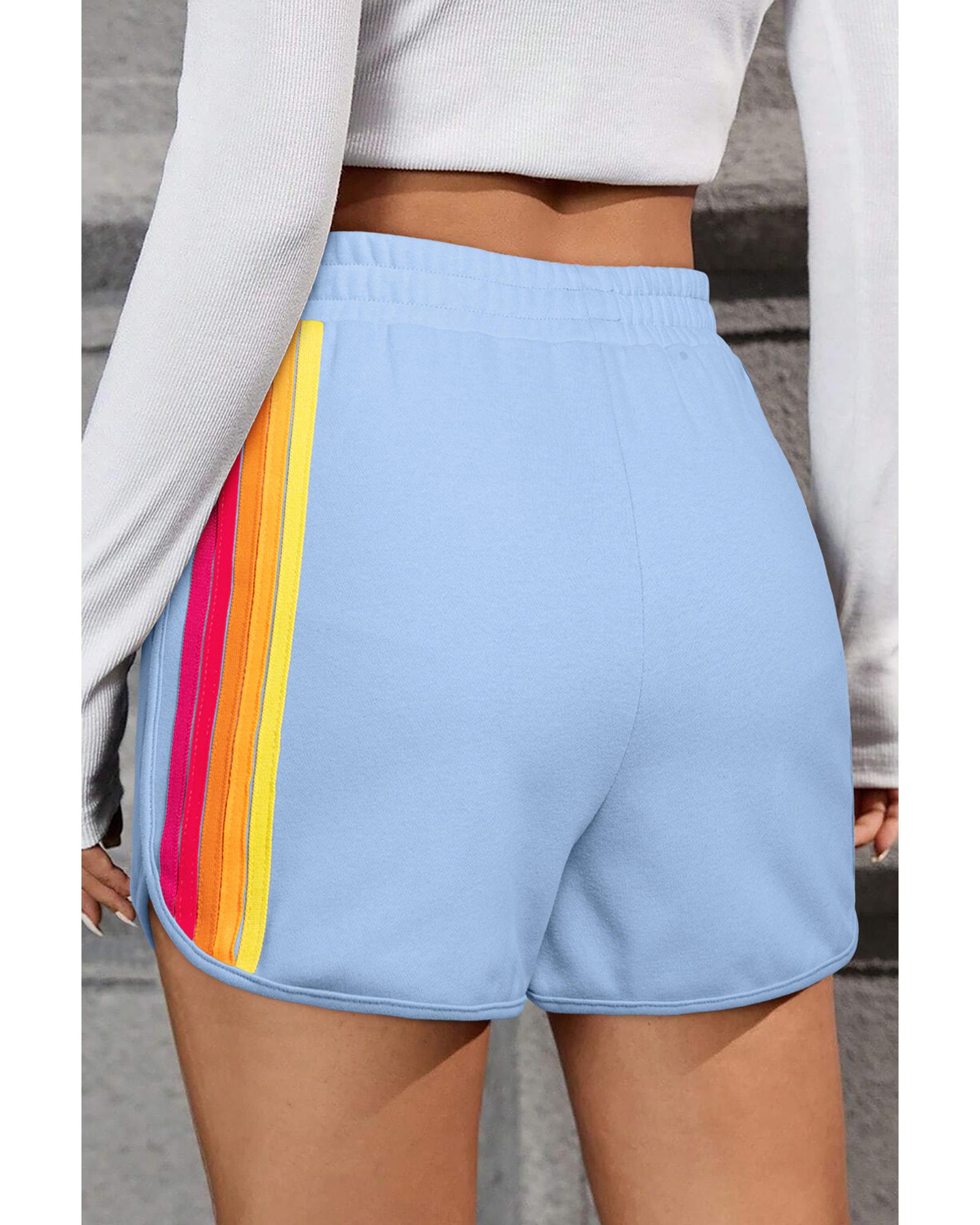 Beau Blue Color Block Stripes Elastic High Waist Active Shorts – XL