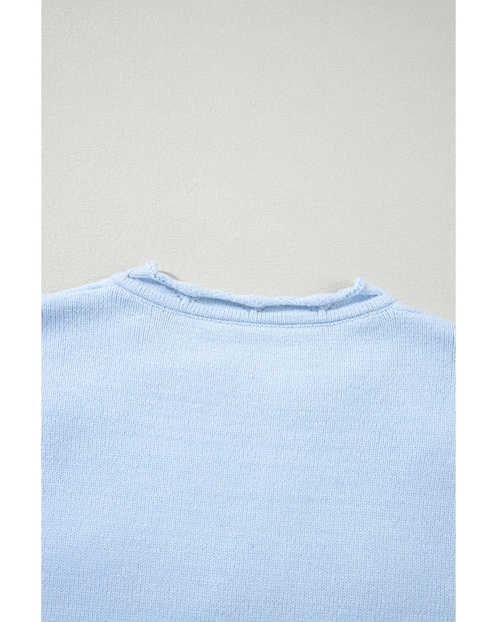 Beau Blue Flower Detail Knitted Notched Neck Sweater – L