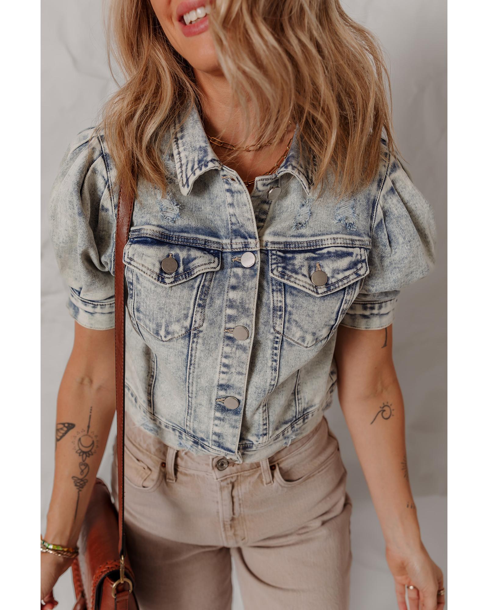 Beau Blue Light Wash Buttoned Chest Pocket Puff Sleeve Denim Jacket – XL