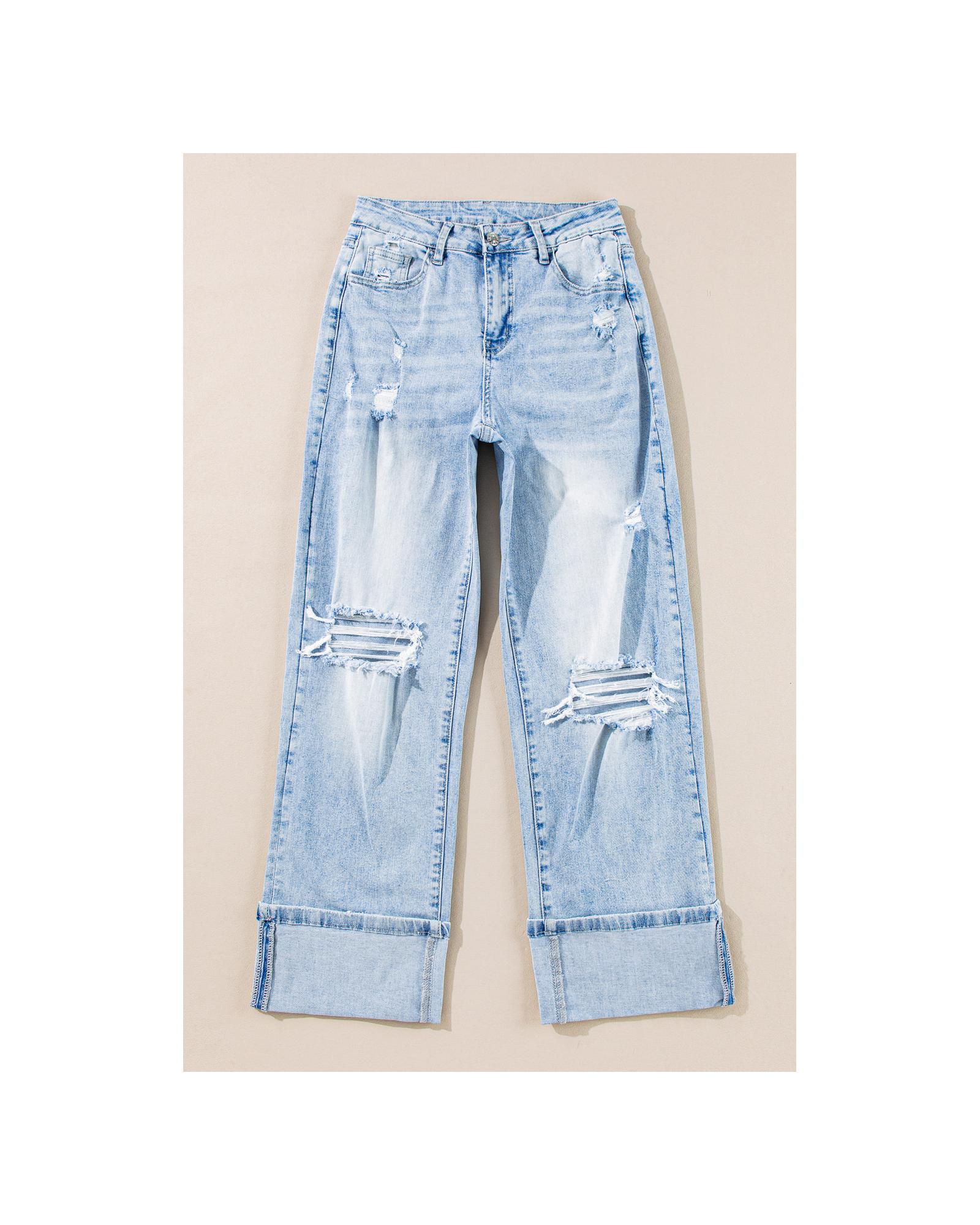 - Light wash distressed jeans