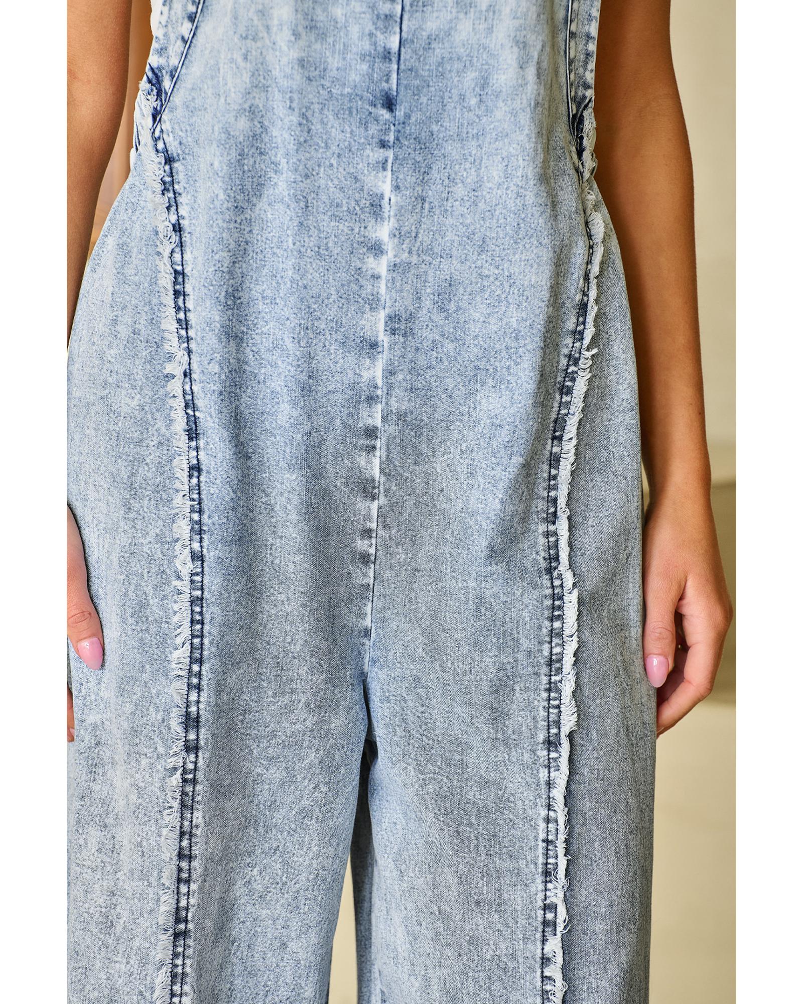 Beau Blue Light Wash Frayed Exposed Seam Wide Leg Denim Overall – XL