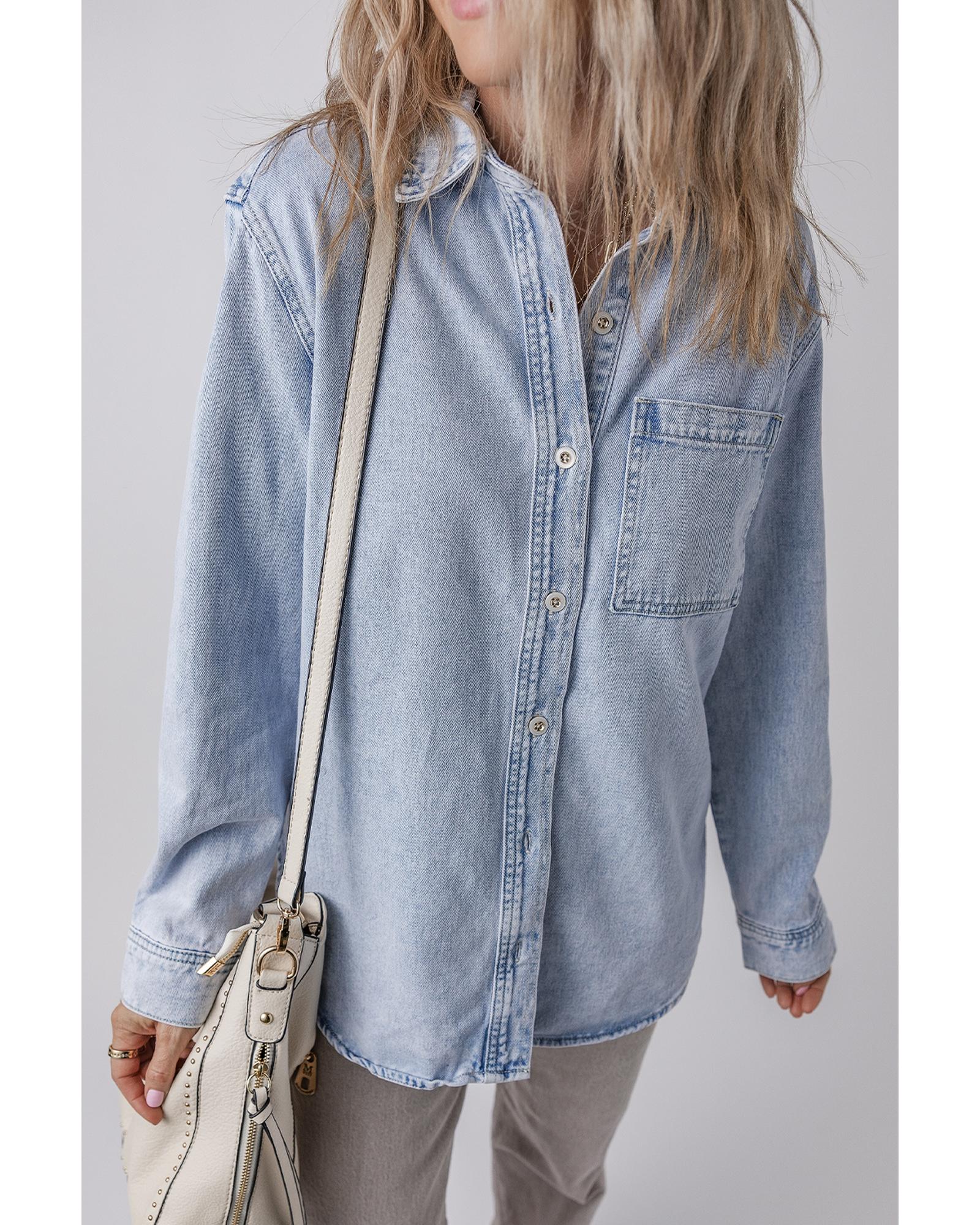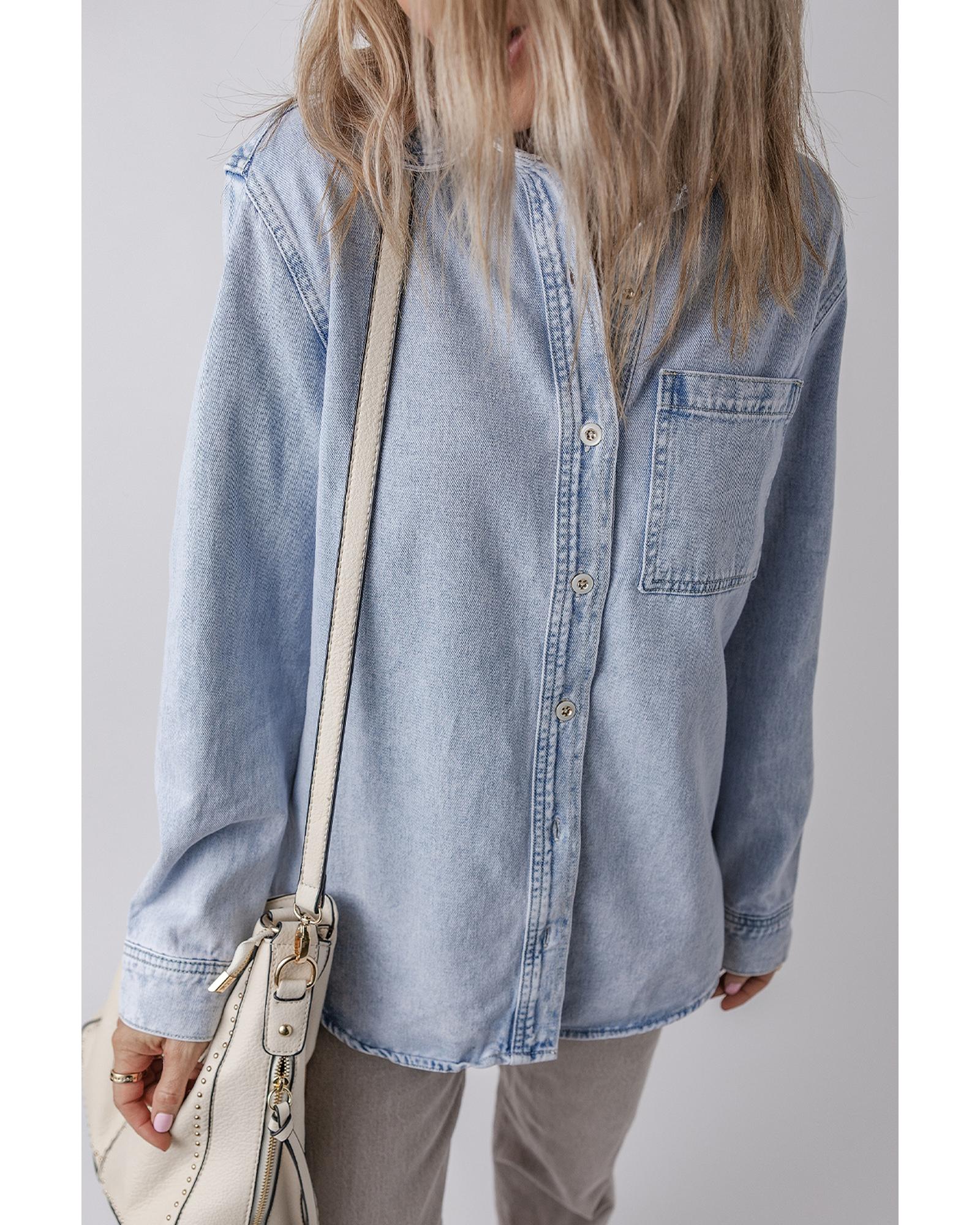 Beau Blue Long Sleeve Buttoned Chest Pocket Denim Shacket - XL