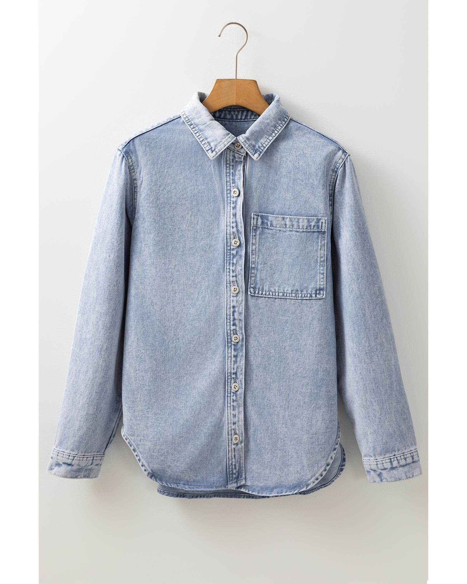 Beau Blue Long Sleeve Buttoned Chest Pocket Denim Shacket – L